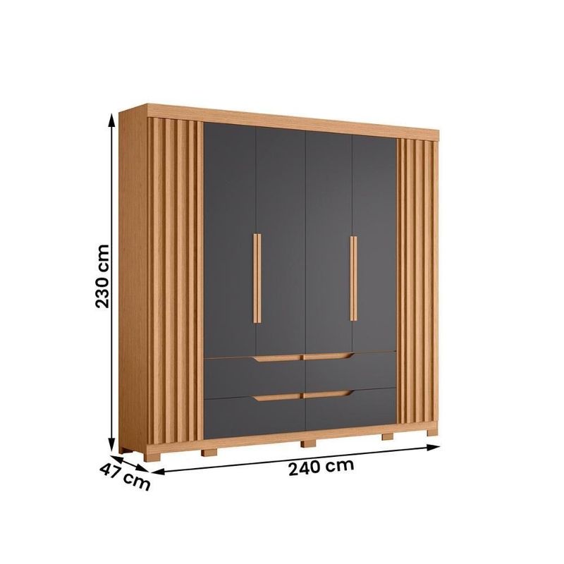 Guarda Roupa Doble Casal Quarto Com 6 Portas E 4 Gavetas Freijo/titaniumApresentamos o nosso guarda roupa casal Doble, perfeito para adicionar um toque de elegância e funcionalidade ao seu quarto. Com um design moderno e sofisticado, este guarda roupa é ideal para qualquer ambiente. As gavetas espaçosas oferecem amplo espaço de armazenamento para organizar seus pertences de forma prática e conveniente. Adquira já o seu e transforme o seu espaço com estilo e praticidade.Modelo: Guarda Roupa Doble Casal;Material: MDP;Altura: 230 cm;Largura: 240 cm;Profundidade: 47 cm;Quantidade de portas: 06, sendo 2 portas com acabamento ripado;Tipo de dobradiças: Metálicas;Quantidade de gavetas: 04;Tipo de corrediças: Telescópicas;Com puxador: Sim;Material do puxador: MDF revestido;Quantidade de prateleiras: 10;Com espelho: Não se aplica;Com cabideiro: Sim, em alumínio;Com pés: Sim,10 de plástico;Peso suportado: até 102 kg distribuídos;Tonalidades de cores:Cinamomo: Fosco;Off White: Brilho;Jatobá: Fosco;Fendi Metalic: Fosco;Nature: Fosco;Titanium: Fosco;Requer montagem: Sim (kit montagem incluso);Condição do item: Novo;Embalagem do envio: Papelão e plástico.Informações adicionais:- Os objetos que ambientam as fotos não acompanham o produto;- É de inteira responsabilidade do cliente a montagem do produto e/ou instalação, assim como possíveis irregularidades provenientes de manuseio inadequado;- Embora o produto acompanhe o manual de montagem, verifique a complexidade antes de decidir montá-lo sozinho, recomendamos que contrate um profissional de sua confiança;- Fique atento, nossas cores podem sofrer alterações dependendo do seu monitor;- ANTES DE MONTAR O SEU PRODUTO, verifique se há alguma peça danificada, caso esteja, prestaremos a devida assistência dentro do prazo da garantia. Marca: Albatroz Moveis | Altura: 230 cm | Largura: 240 cm | Comprimento: 47 cm | Altura Embalado: 32 cm | Largura Embalado: 48,2 cm | Comprimento Embalado: 243,2 cm | Peso: 143,750 kg | Peso Embalado: 143,750 kg | Material: MDP | Modelo: Guarda Roupa Doble Casal 6 Pts 4 Gav | Estado de Origem: SP | Descrição do Tamanho: 243,2x48,2x32 cm | Garantia em meses: 03 meses de garantia para defeito de fabricação | Precisa de montagem?: Sim, sugerimos a contratação do nosso serviço de montagem (para os CEPs em que o serviço está disponível) ou de algum profissional experiente de sua preferência | Tonalidade: Multicolorido | Tipo de guarda roupa: Casal | Quantidade de portas: 6 | Linha: Quarto | Fonte do produto: Loja DoceLar | Com baú: Sim | Com espelho: Não | Condição do item: Novo | Idade: Adultos | Material das corrediças: Telescopicas | Quantidade de espelhos: 0 | Profundidade: 47 cm | Acessórios de montagem incluidos: Sim | Com pés: Sim | Com gavetas: Sim | É kit: Não | Quantidade de cabideiros do guarda-roupa: 2 | Estilo: Moderno | Quantidade de gavetas: 4 | Com portas: Sim | Acabamento: Pintura | Quantidade de portas com chave: 0 | Com nichos: Sim | Com cabideiros: Sim | Capacidade em peso: 102 kg | Com corrediças telescópicas: Sim | Setores de pendurado: Superior | Com espaço para calçado: Sim | Quantidade de prateleiras: 10 | Com prateleiras: Sim | Tamanho: Casal | Tipos de abertura das portas: Bater | Material dos cabideiros: Aluminio | Quantidade de nichos: 10 | Materiais da estrutura: MDP | Quantidade de gavetas com chave: 0 | Tipo de produto: Guarda Roupa | Materiais da fita de borda: N/A | Com fita de borda: Sim | Tipo de Closet: Casal | Produto: Guarda Roupa Doble Casal Quarto Com 6 Portas e 4 Gavetas | Acompanha Porta: Sim | Código INMETRO: Não se aplica | Código ANVISA: Não se aplica | Código da Homologação ANATEL: Não se aplica | Código MAPA: Não se aplica | Precisa de baterias ou pilhas (areBatteriesRequired): Não | Principais Característica 0: Feito em MDP. | Principais Característica 1: Com 6 Portas, sendo 2 portas com acabamento ripado. | Principais Característica 2: Com 4 gavetas com corrediças telescópicas. | Certificação de teste externa: Não se aplica | Componentes incluídos: Manual do Usuario | Is Fragile: Sim | Número do modelo: 24462 | Número de caixas: 4 | Quantidade de Itens: 1 | Número da peça: 24462 | Inclui manual de montagem: Sim | Freijo/Titanium