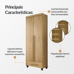 Guarda Roupa Dubai 2 Portas 1 Gaveta Prateleiras Nichos Compacto Para Quarto Solteiro - CinamomoO Roupeiro Dubai combina design moderno com soluções inteligentes de organização, sendo uma excelente escolha para quem busca um guarda-roupa compacto, bonito e funcional para o quarto. Seu visual equilibrado valoriza o ambiente, enquanto as duas portas proporcionam acesso prático ao interior, facilitando a rotina e o armazenamento das peças do dia a dia. Seu grande diferencial está na organização interna adaptável, que permite configurar o espaço conforme a necessidade. O interior pode ser utilizado com prateleiras e nichos para roupas dobradas, caixas organizadoras e acessórios, ou também acomodar cabideiro para pendurar camisas, vestidos e outras peças, trazendo mais flexibilidade para diferentes tipos de uso. A gaveta inferior complementa a funcionalidade do roupeiro, oferecendo um compartimento adicional ideal para roupas menores, itens pessoais ou acessórios.PRINCIPAIS BENEFÍCIOSGuarda-roupa compacto para quarto - ideal para ambientes menores ou quartos de solteiro2 portas funcionais - acesso prático aos itens armazenadosOrganização interna adaptável - pode ser utilizada com nichos ou cabideiro conforme a necessidadeGaveta inferior adicional - perfeita para roupas menores, acessórios e objetos pessoaisDesign moderno e versátil - combina facilmente com diferentes estilos de decoraçãoCARACTERÍSTICAS TÉCNICASTipo: Roupeiro / Guarda-roupaModelo: DubaiCor: CinamomoQuantidade de portas: 2Quantidade de gavetas: 1Organização interna: Prateleiras, nichos e/ou cabideiroIndicação de uso: Quarto de solteiro / ambientes compactosMEDIDAS DO PRODUTOAltura: 225 cmLargura: 85,4 cmProfundidade: 46,2 cmCUIDADOS E CONSERVAÇÃOPara manter o produto sempre bonito, recomenda-se a limpeza com pano levemente umedecido, sem uso de produtos abrasivos.ATENÇÃOIMAGENS MERAMENTE ILUSTRATIVAS. AS CORES PODEM VARIAR DE ACORDO COM A TELA, MONITOR, ILUMINAÇÃO DO AMBIENTE OU PERCEPÇÃO VISUAL. ITENS DECORATIVOS PRESENTES NAS IMAGENS NÃO ACOMPANHAM O PRODUTO.Guarda Roupa Dubai 2 Portas 1 Gaveta Prateleiras Nichos Compacto para Quarto Solteiro - Cinamomo