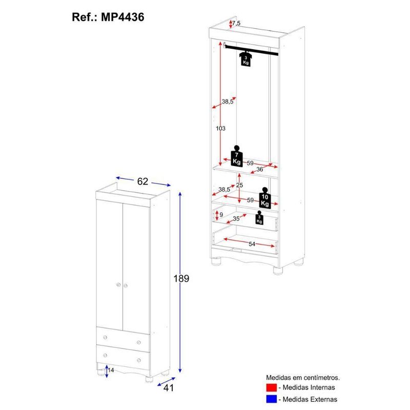 Guarda-roupa Infantil 62cm 2 Portas E 2 Gavetas Dengo Multimóveis Mp4436 Branco/off White Branco/off WhiteDescubra como pequenos detalhes podem transformar o cantinho do seu bebê em um espaço cheio de encanto e praticidade. O Guarda-roupa Infantil 62cm 2 Portas e 2 Gavetas Dengo Multimóveis MP4436 foi pensado para trazer leveza ao ambiente, deixando tudo mais delicado e organizado. Compacto por fora e surpreendente por dentro, ele oferece o aconchego visual e a funcionalidade que toda família busca. Uma escolha que traz tranquilidade para o dia a dia e beleza para o quarto.Diferenciais:- 3 anos de garantia contra defeitos de fabricação e material.- Produzido em madeira de reflorestamento (MDP 12/15mm) com acabamento acetinado (cerca de 20% de brilho): sustentabilidade e durabilidade.- 2 portas e 2 gavetas: amplo espaço interno para organizar roupinhas e acessórios.- Corrediças telescópicas: permitem a abertura total e o manuseio silencioso das gavetas.- Cabideiro em alumínio: acomoda roupas longas e curtas para que não amassem.- Puxadores em ABS redondos e práticos.- Pés em polipropileno e rodapés usinados em MDF: estabilidade e visual requintado.- Sistema antitombamento: proporciona segurança para o filho e tranquilidade aos pais.Conteúdo da Embalagem:1 (um) Guarda-roupaManual de MontagemKit FerragemDimensões do Produto Montado:Altura: 189cm | Largura: 62cm | Profundidade: 41cmAltura dos Pés: 5,8cm*Você pode consultar as medidas detalhadas na imagem técnica do produto.Observações Importantes:*As cores do produto podem sofrer variações de tonalidade de acordo com as configurações do seu dispositivo.*Aqui na Loja Multimóveis, você pode concluir sua compra facilmente com toda segurança. A entrega é garantida e você está em 1° lugar.*Imagens meramente ilustrativas (decoração não inclusa).*O produto será entregue desmontado e não disponibilizamos o serviço de montagem. Acabamento: FF/Pintura UV | Material: MDP | Referência do Modelo: MP4436 | Instruções de Cuidado: Limpar com pano seco para retirar o pó. Não utilizar produtos químicos ou abrasivos a limpeza. Não aplicar lustra móveis. | Coleção: Dengo | Sistema de Montagem: O produto acompanha manual de montagem juntamente com kit ferragem. O produto será entregue desmontado e não disponibilizamos o serviço de montagem. | Com Portas: Sim | Quantidade de Portas: 2 | Quantidade de Prateleiras: 2 | Corrediça: Telescópica | Quantidade de Gavetas: 2 | Material do Puxador: ABS | Altura Montado: 189 | Largura Montado: 62 | Profundidade Montado: 41 | Tamanho (L x A x P): 62 x 189 x 41 | Tonalidade: Branco | Produto: Guarda Roupa | Peso do Produto: 39 | Garantia do Fabricante: 3 | Tipo de Guarda-Roupa: Infantil | Fabricante: Multimóveis | Requer Montagem: Sim | Tamanho de Guarda-Roupa: Solteiro | Tipos de abertura das portas: Porta de dobradiça | Altura (cm): 189 cm | Largura (cm): 62 cm | Profundidade (cm): 41 cm | Estado de Origem: RS | Com prateleiras: Sim | Com gavetas: Sim | Com nichos: Não | Com baú: Não | Com cabideiros: Sim | Quantidade de nichos: 0 | Com espaço para calçado: Não | Com corrediças telescópicas: Sim | Tempo de Garantia: 3 meses | Produto Composto por: 1 guarda-roupa, manual de montagem e kit ferragem. | Destaque 1: Produzido em MDP: maior durabilidade e resistência. | Destaque 2: Cabideiro de alumínio para organizar roupas longas e curtas. | Destaque 3: Gavetas com corrediças telescópicas: abertura total e silenciosa. | Destaque 4: Tamanho do produto montado (L x A x P): 62 x 189 x 41 cm | Destaque 5: Pés em polipropileno e rodapés: estabilidade e elegância. | Tipo de produto: Guarda-roupa | Capacidade em peso: N/A | Tempo de montagem: N/A | Estilo: Moderno | Marca: Multimóveis | Com pés: Sim | Com espelho: Não | Peso (kg): 39 kg | Quantidade de caixas de embalagem: 02 | Baterias são necessárias?: Não | Certificação de teste externa: N/A | Is Fragile: Não | Dimensões do item P x L x A: depth#value=41;depth#unit=centimeters;width#value=62;width#unit=centimeters;height#value=189;height#unit=centimeters | Quantidade de itens: 1 | Número da peça: MP4436.697 | Peso do item: unit=kilograms;value=39 | Inclui manual de montagem: Sim | Materiais da estrutura: MDP | Tipo de Garantia: Garantia do Fabricante | Montagem: Necessita Montagem | País de Origem: Brasil | Componentes incluídos: Kit de instalação | Altura do Produto com Embalagem: 18 cm | Largura do Produto com Embalagem: 43 cm | Comprimento do Produto com Embalagem: 188 cm | Tipo da embalagem do vendor: Sem embalagem adicional | Peso do Produto com Embalagem: 39000 g | Cor: Branco/Off White