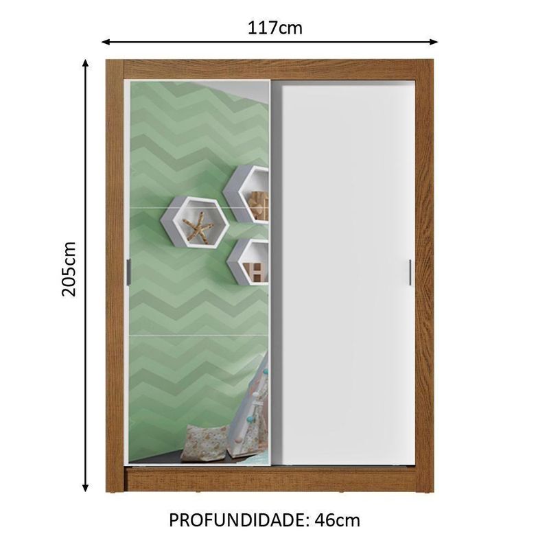 Guarda-roupa Infantil Enzo 2 Portas de Correr MadesaCaracterísticas:- Duas portas de correr- Trilhos em alumínio- Dobradiças metálicas- Duas prateleiras- Três nichos- Cabideiro de metal- Acabamento em Pintura PoliésterEspecificações Técnicas:- Marca: Madesa- Referência: XA10946E1E- Cor: Rustic/Branco- Material: MDP- Itens inclusos: Um cabideiro metálico grande | Duas prateleiras e quatro nichos | Duas portas de correr, uma de madeira e outra com espelho, ambas com puxadores em PVC- Dimensões da Embalagem (AxLxP): 21cm x 55cm x 218,5cm- Dimensões do Produto (AxLxP): 205cm x 117cm x 46cm- Peso Líquido (Kg): 64- Peso Bruto (Kg): 64,7- Garantia: 3 Meses