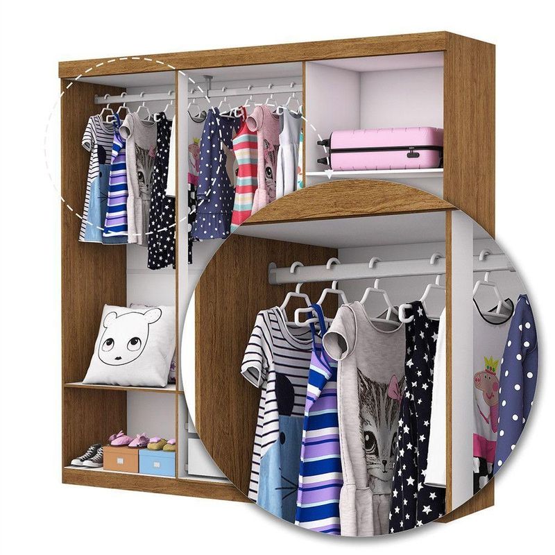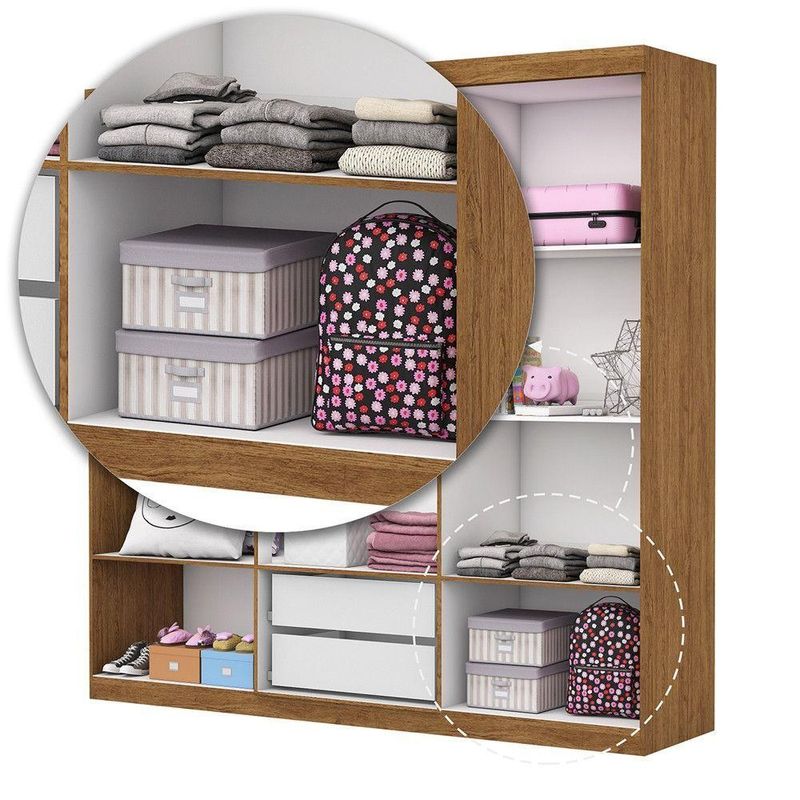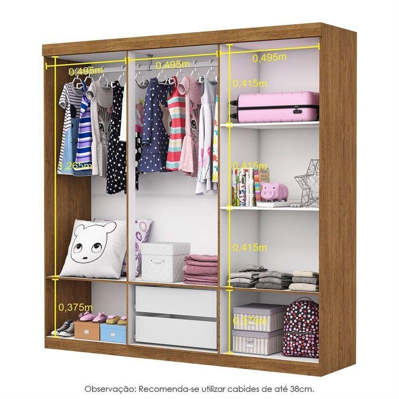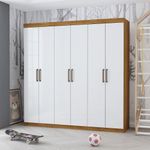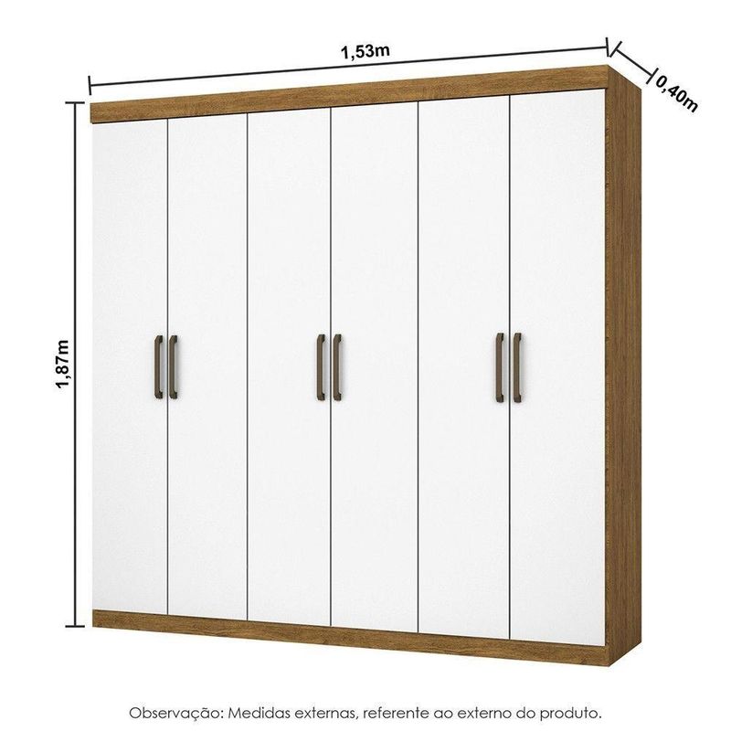 Guarda Roupa Infantil Iona 6 Portas Freijó Com BrancoO Guarda Roupa Iona e um produto perfeito para quem possui um ambiente com espaco reduzido e ainda procura qualidade e durabilidade no mesmo movel.Combinado com 6 portas, 2 gavetas, 3 prateleiras e um grande cabideiro, deixando o produto com uma otima divisao interna. O maleiro e ideal para guardar malas, cobertores, edredons. O cabideiro alem de resistente, e ideal para pendurar pares de blusas, camisas acessorios. As prateleiras sao perfeitas para colocar roupas como blusas, shorts, regatas, kits de maquiagem, toalhas, caixinhas com acessorios e bolsas menores. As gavetas fixadas sobre corredicas metalicas, sao ideais para guardas blusas dobradas, shorts, malhas e roupas intimas. Estrutura do produto em MDP. Indicado tbm para ambientes infantis, como quartos e brinquedoteca. Dimensoes: Altura: 187 cm Largura: 153 cm Profundidade: 40 cm Peso: 68,05 kg Garantia do fabricante: 3 Meses