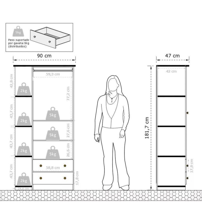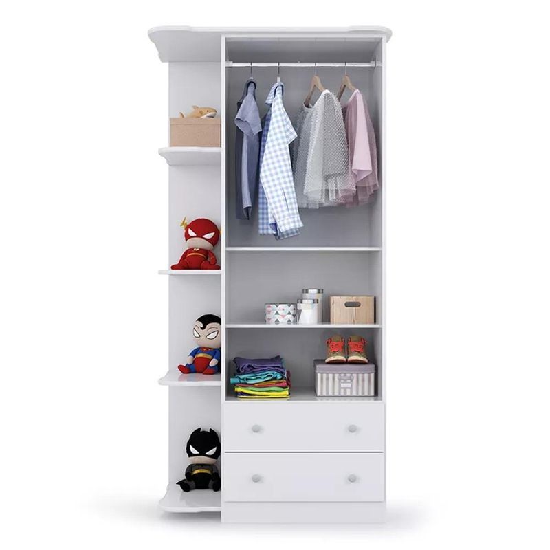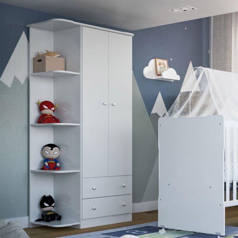 Guarda-roupa Infantil New Baby 2 Portas E 2 Gavetas Branco - Batrol MóveisO Guarda-Roupa Infantil New Baby é a escolha ideal para manter o quarto do seu bebê organizado e com um toque de elegância. Com um design funcional e moderno, ele oferece espaço suficiente para armazenar roupas, acessórios e outros itens essenciais do dia a dia.A pintura UV garante um acabamento resistente e durável, enquanto as corrediças metálicas proporcionam um deslizar suave das gavetas. Os puxadores de ABS são duráveis e fáceis de manusear, conferindo um visual contemporâneo ao móvel. As três prateleiras externas são perfeitas para exibir objetos decorativos ou armazenar itens de fácil acesso.Dimensões do Produto Montado:Altura: 181,7 cmLargura: 90 cmProfundidade: 47 cmObservações:- Pintura UV- Corrediças metálicas- Puxadores de ABS- 3 prateleiras externas