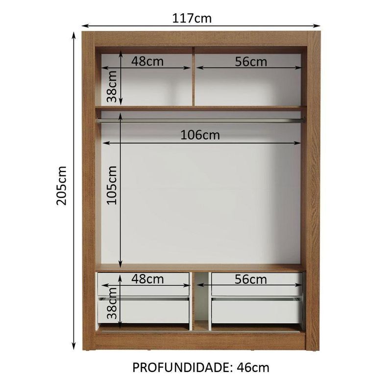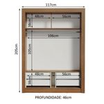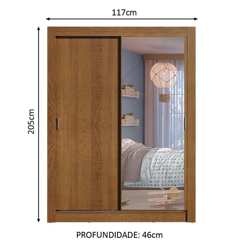 Guarda-Roupa Infantil Theo 2 Portas 4 Gavetas MadesaCaracterísticas:- Duas portas de correr- Trilhos em alumínio- Dobradiças metálicas- Quatro gavetas com corrediças metálicas- Duas prateleiras- Três nichos- Acabamento em Pintura PoliésterEspecificações Técnicas:- Marca: Madesa- Referência: XA10945Z1E4G- Cor: Rustic- Material: MDP- Itens inclusos: Quatro gavetas com corrediças metálicas | Um cabideiro metálico grande | Duas prateleiras | Três nichos | Duas portas de correr, uma de madeira e uma espelhada, ambas com puxadores em PVC- Dimensões da Embalagem (AxLxP): 38cm x 55cm x 218,5cm- Dimensões do Produto (AxLxP): 205cm x 117cm x 46cm- Peso Líquido (Kg): 80- Peso Bruto (Kg): 72,7- Garantia: 3 Meses
