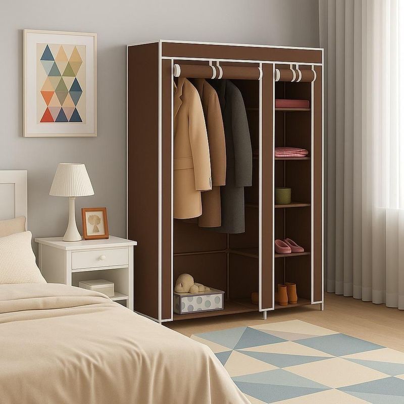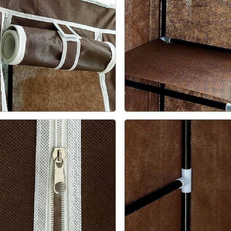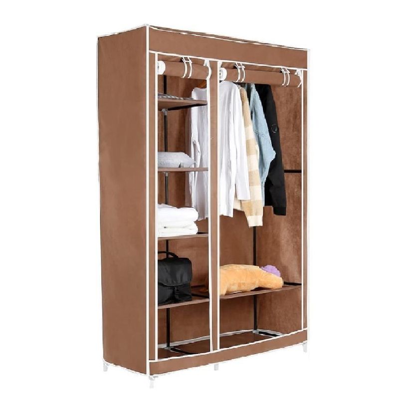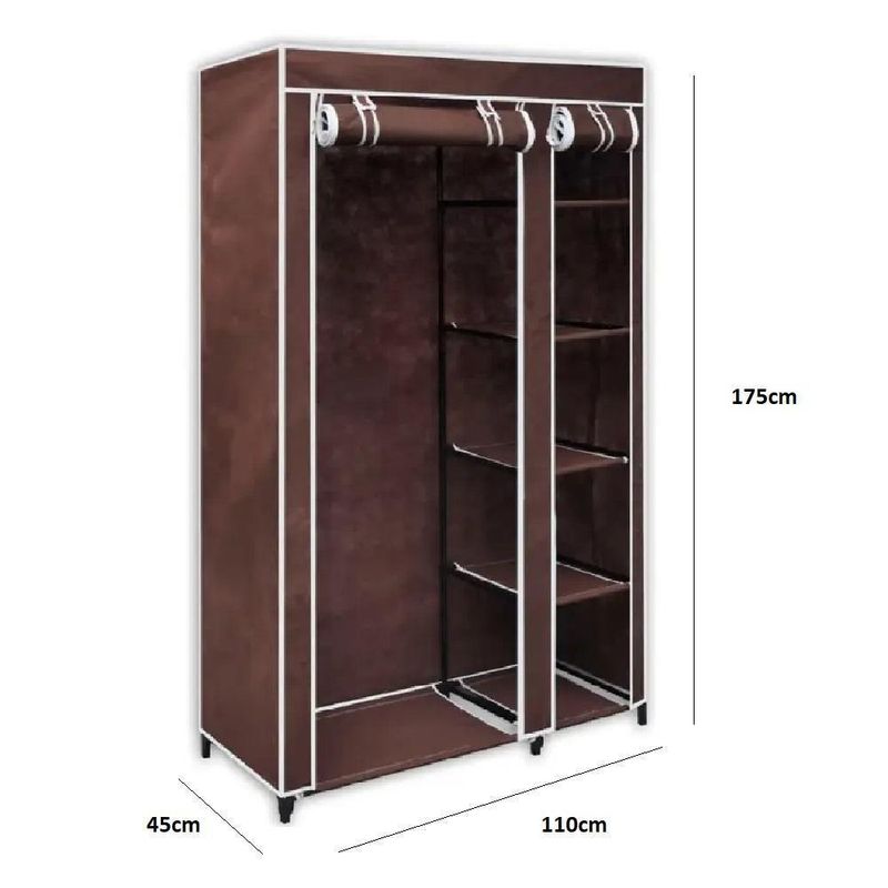 Guarda Roupa Modular Portátil Para Quarto Com Arara, Prateleiras E Porta Com Zíper Marrom LuxoGuarda Roupa Modular Portátil Para Quarto e Closet Com Arara, Prateleiras e Porta Com Zíper Marrom LuxoOrganize suas roupas e acessórios com praticidade, elegância e ótimo aproveitamento de espaço. O Guarda Roupa Modular Portátil é a solução ideal para quem precisa manter tudo em ordem em ambientes compactos, sem abrir mão de funcionalidade e visual moderno. Indicado para quartos, closets, kitnets, lavanderias ou como apoio temporário, ele oferece excelente capacidade interna e proteção contra poeira.Com estrutura leve e resistente, o modelo conta com arara para roupas penduradas, prateleiras laterais para peças dobradas, calçados e objetos diversos, além de capa com fechamento em zíper, que mantém tudo protegido e organizado no dia a dia.Características Do ProdutoEstrutura modular prática e funcionalArara para pendurar casacos, camisetas, vestidos e camisas5 prateleiras laterais para roupas dobradas, sapatos e objetosCapa protetora com porta em zíperEstrutura leve com tubos metálicos e conectores reforçadosMontagem simples, sem necessidade de ferramentasFácil de desmontar e transportarBenefíciosOrganização completa em pouco espaçoProteção contra poeira, sujeira e umidadeIdeal para ambientes compactos ou uso temporárioVisual moderno que combina com diversos ambientesExcelente custo-benefícioEspecificações TécnicasTipo: Guarda Roupa Portátil ModularMaterial da estrutura: Tubos metálicos e conectores reforçadosRevestimento: Tecido com fechamento em zíperCor: MarromDimensões aproximadas:Largura: 110 cmProfundidade: 45 cmAltura: 175 cmConteúdo Da Embalagem1 Guarda Roupa Modular Portátil (desmontado)OBS: Vídeo meramente ilustrativo. Produto enviado na cor marrom.