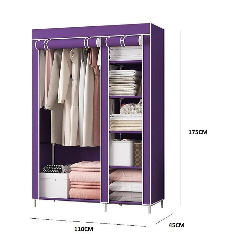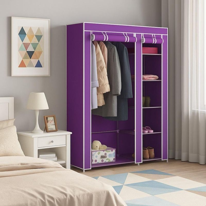 Guarda Roupa Modular Portátil Para Quarto Com Arara, Prateleiras E Porta Com Zíper Roxo LuxoGuarda Roupa Modular Portátil Para Quarto e Closet Com Arara, Prateleiras e Porta Com Zíper Roxo LuxoOrganize suas roupas e acessórios com praticidade, elegância e ótimo aproveitamento de espaço. O Guarda Roupa Modular Portátil é a solução ideal para quem precisa manter tudo em ordem em ambientes compactos, sem abrir mão de funcionalidade e visual moderno. Indicado para quartos, closets, kitnets, lavanderias ou como apoio temporário, ele oferece excelente capacidade interna e proteção contra poeira.Com estrutura leve e resistente, o modelo conta com arara para roupas penduradas, prateleiras laterais para peças dobradas, calçados e objetos diversos, além de capa com fechamento em zíper, que mantém tudo protegido e organizado no dia a dia.Características Do ProdutoEstrutura modular prática e funcionalArara para pendurar casacos, camisetas, vestidos e camisas5 prateleiras laterais para roupas dobradas, sapatos e objetosCapa protetora com porta em zíperEstrutura leve com tubos metálicos e conectores reforçadosMontagem simples, sem necessidade de ferramentasFácil de desmontar e transportarBenefíciosOrganização completa em pouco espaçoProteção contra poeira, sujeira e umidadeIdeal para ambientes compactos ou uso temporárioVisual moderno que combina com diversos ambientesExcelente custo-benefícioEspecificações TécnicasTipo: Guarda Roupa Portátil ModularMaterial da estrutura: Tubos metálicos e conectores reforçadosRevestimento: Tecido com fechamento em zíperCor: RoxoDimensões aproximadas:Largura: 110 cmProfundidade: 45 cmAltura: 175 cmConteúdo Da Embalagem1 Guarda Roupa Modular Portátil (desmontado)OBS: Vídeo meramente ilustrativo. Produto enviado na cor roxo.