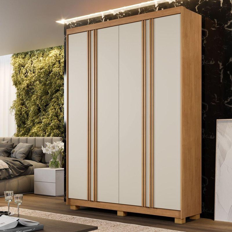 Guarda Roupa Porto 4 Portas Ripado 3 Gavetas 8 Prateleiras Cinamomo OffO Guarda-Roupa Porto 4 portas e produzido em 100 mdp 15 mm que garante maior vida util. Contem 4 portas e 8 prateleiras e nichos que acomodam suas roupas. Contem 3 gavetas espacosas com corredicas telescopicas que garante suavidade e durabilidade. Cabideiro em aluminio, portas ripadas e pes inclusos. Sua fabricacao utiliza a linha mdp perffect, que une a sustentabilidade a inovacao tecnologica, proporcionando durabilidade e facil limpeza; nosso revestimento reproduz os veios naturais da madeira que podem ser sentidos pelo tato, inspirando sofisticacao ao mobiliario. Pelo revestimento ser termofundido com alta pressao e temperatura apresenta maior compactacao das camadas o que elimina a possibilidade de empenamento do painel; superior resistencia de fixacao do parafuso o que aumenta a vida util do movel e alem disso atende aos testes definidos em normas, conferindo resistencia a: abrasao; riscos; agentes manchadores; aderencia.; conta com boa resistencia, e facil de limpar e e ecologicamente correto, pois utiliza madeira de reflorestamento, evitando o desmatamento.Caracteristicas: Material principal: mdp Espessura da chapa: 15 mm Escala de brilho: fosco Acabamento: Pintura UV Sistema de montagem: parafuso, cavilha e cantoneiras metalicas Quantidade de Portas: 04 Quantidade de Gavetas: 03 Quantidade de Prateleiras: 08 Experiencia touch e wood , laminas com textura super realista que permite a sensacao de toque autentico da madeira natural. Dimensoes: Altura: 225 cm Largura: 143,5 cm Profundidade: 49 cm Peso: 126 kg Garantia do fornecedor: 3 meses Recomendacoes de uso, manutencao e limpeza: Limpar com flanela ou pano macio e seco, nao utilizar produtos abrasivos, desengordurantes, alcool ou solvente. Nao expor o produto diretamente a luz solar e a umidade.