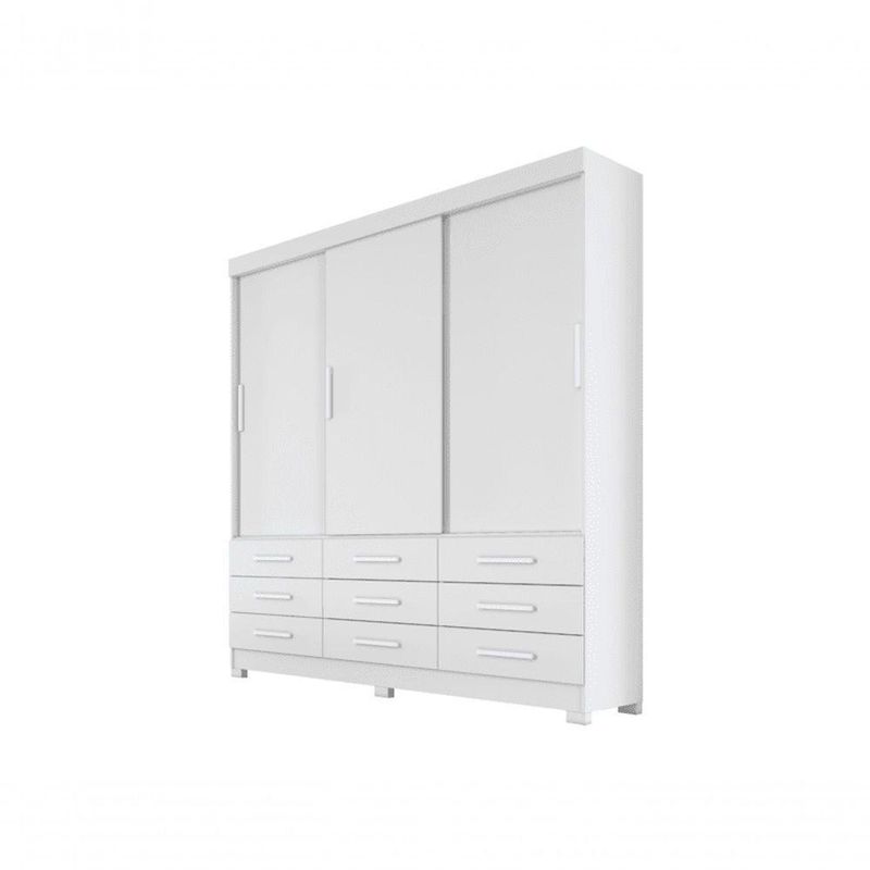 Guarda Roupa Solteiro- Capri -branco- Novo HorizonteGuarda Roupa Solteiro 3 Portas 9 Gavetas - Capri-Branco - Móveis Novo HorizonteO Guarda Roupa Capri vai proporcionar um ambiente aconchegante mantendo um visual sofisticado e funcional. Composto por peças de extrema qualidade e com excelente espaço interno bem distribuídos, oferecendo máxima organização de forma prática. Fabricado em 100% MDP, 3 portas de correr, possui 9 gavetas com corrediças telescópicas, puxadores com acabamento amadeirado e cabideiros em alumínio. Amplo espaço interno. Aproveite!Faz parte do anúncio:1 Guarda Roupa Solteiro 3 Portas 9 Gavetas - Capri - Móveis Novo HorizonteObs. Objetos de decoração não inclusosParticularidades do guarda-roupa:Características:- 100% MDP;- Puxadores com acabamento amadeirado;- 9 Gavetas com corrediças telescópicas;- Trilho inferior em alumínio;- Roldanas com rolamento;- Cabideiros em alumínio;- Pés inclusos;Dimensões:Altura: 2,05 metrosLargura: 1,80 metrosProfundidade: 46,5 centímetrosInformações Importantes:.-Produtos podem apresentar diferenças de tonalidades entre a foto na tela e o produto real, devido a calibração de cor de tela.-Limpar com flanela ou pano macio. Não utilizar álcool. Não utilizar produtos abrasivos ou corrosivos.-Nós prezamos pela qualidade da entrega em primeiro lugar, trabalhamos com transportadoras altamente selecionadas e os melhores materiais de embalagem.-A montagem é de total responsabilidade do comprador. Antes de comprar, verifique o espaço disponível para a montagem.-Certifique-se de que o produto caiba em elevadores e vãos de escadas, não fazemos içamentos. Quaisquer despesas deste tipo ficam a cargo do cliente-Garantia de 3 meses contra defeitos de fabricação.