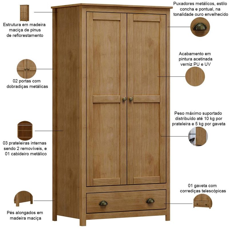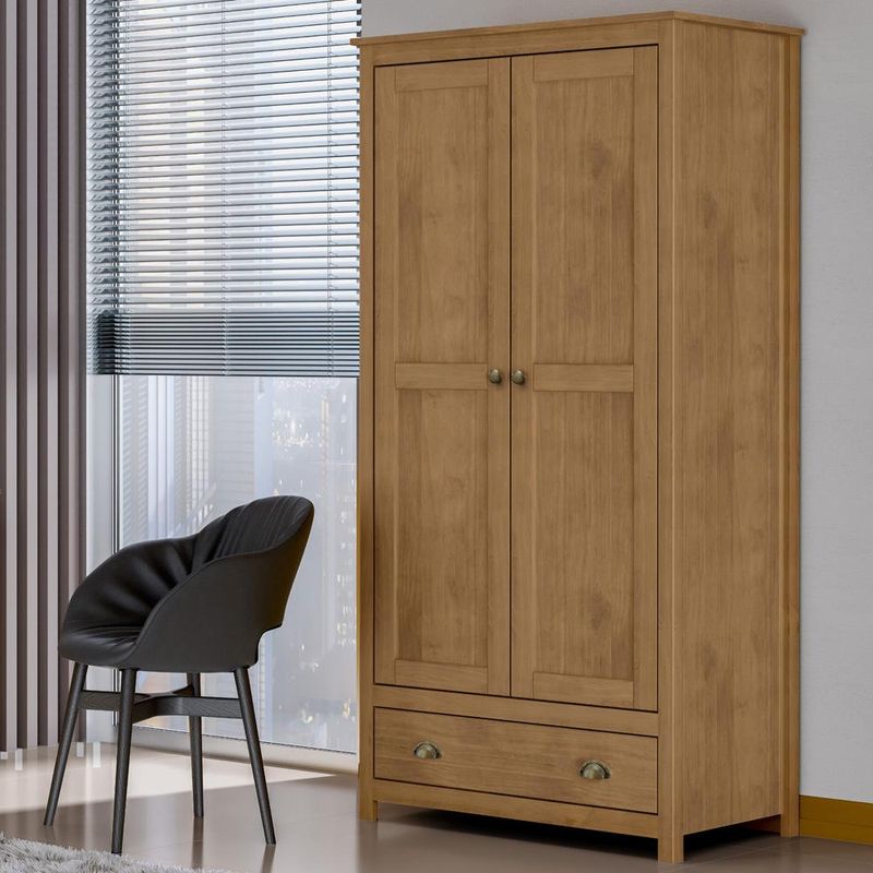 Guarda Roupa Solteiro 2 Portas 1 Gaveta Madeira Maciça Mazzaro F06 Freijó - Lyam Decor