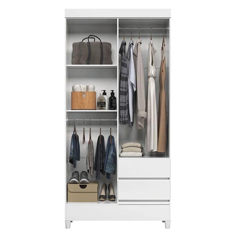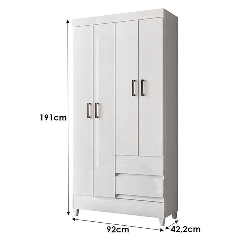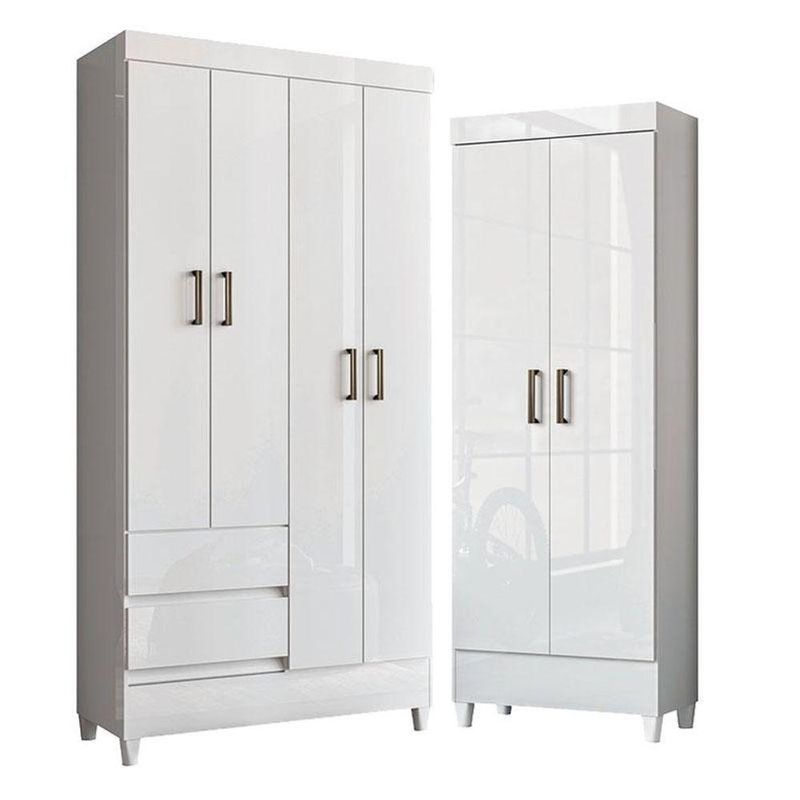 Guarda Roupa Solteiro 4 Portas Com Pés Fit Com Armário Multiuso Fit Branco- Santos AndiráGuarda Roupa Solteiro 4 Portas com Pés Fit com Armário Multiuso Fit Branco- Santos AndiráGuarda-Roupa Multiuso Fit Santos Andirá na cor Branco e, com 4 portas. Ideal para organização do quarto, oferecendo ótimo aproveitamento de espaço, design moderno e funcionalidade. Produto versátil, resistente e de excelente qualidade.Guarda Roupa Solteiro 4 portas com pés Fit Branco- Santos AndiráCaracterísticas técnicas:- Desenvolvida em MDP- Pintura em verniz brilhante - 02 gavetas com corrediças metálicas- Puxadores em ABS- 02 amplos Cabideiros/Calceiros- pés em PVCDimensões:Altura: 191 cmLargura: 92 cmProfundidade: 42,2 cmMultiuso com pés Fit Branco - Santos AndiráCaracterísticas técnicas:- Desenvolvida em MDP - Pintura em verniz brilhante- Puxadores em PVC- Pés em PVC- Amplas prateleirasDimensões:Altura: 165,5 cmLargura: 60 cmProfundidade: 31,2 cmInformações importantes:* Não acompanha decorações e acessórios* Nossas cargas possuem seguro, portanto, no ato da entrega, confira a quantidade de volumes recebida, e também o estado da embalagem. Se houver qualquer inconsistência, não assine o comprovante de entrega;* O armazenamento do produto no endereço de entrega é de responsabilidade do comprador. Evite apoiar o produto na vertical, bem como evite áreas que deixem o produto exposto a chuva ou umidade excessiva;* Pequenas variações de tonalidade são possíveis, em razão da diferença de resolução da tela onde o anúncio está sendo visualizado. Se notar diferença expressiva, comunicar a empresa antes de efetuar a montagem;* O serviço de entrega contratado contempla a entrega até a primeira área coberta ou portaria, não sendo coberto o ato de subir escadas/elevadores ou adentrar nas residências;* Não nos responsabilizamos pela montagem, desmontagem ou instalação do produto.
