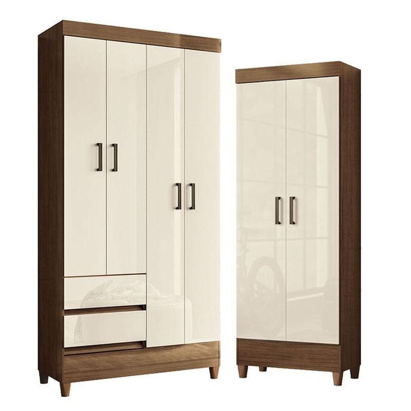 Guarda Roupa Solteiro 4 Portas Com Pés Fit Com Armário Multiuso Fit Jequitibá Off White Acetinado - Santos AndiráGuarda Roupa Solteiro 4 Portas com Pés Fit com Armário Multiuso Fit Jequitibá Off White- Santos AndiráGuarda-Roupa Multiuso Fit Santos Andirá na cor Jequitibá Off White, com 4 portas. Ideal para organização do quarto, oferecendo ótimo aproveitamento de espaço, design moderno e funcionalidade. Produto versátil, resistente e de excelente qualidade.Guarda Roupa Solteiro 4 portas com pés Fit Jequitibá Off White - Santos AndiráCaracterísticas técnicas:- Desenvolvida em MDP- Pintura em verniz brilhante - 02 gavetas com corrediças metálicas- Puxadores em ABS- 02 amplos Cabideiros/Calceiros- pés em PVCDimensões:Altura: 191 cmLargura: 92 cmProfundidade: 42,2 cmMultiuso com pés Fit Jequitibá Off White - Santos AndiráCaracterísticas técnicas:- Desenvolvida em MDP - Pintura em verniz brilhante- Puxadores em PVC- Pés em PVC- Amplas prateleirasDimensões:Altura: 165,5 cmLargura: 60 cmProfundidade: 31,2 cmInformações importantes:* Não acompanha decorações e acessórios* Nossas cargas possuem seguro, portanto, no ato da entrega, confira a quantidade de volumes recebida, e também o estado da embalagem. Se houver qualquer inconsistência, não assine o comprovante de entrega;* O armazenamento do produto no endereço de entrega é de responsabilidade do comprador. Evite apoiar o produto na vertical, bem como evite áreas que deixem o produto exposto a chuva ou umidade excessiva;* Pequenas variações de tonalidade são possíveis, em razão da diferença de resolução da tela onde o anúncio está sendo visualizado. Se notar diferença expressiva, comunicar a empresa antes de efetuar a montagem;* O serviço de entrega contratado contempla a entrega até a primeira área coberta ou portaria, não sendo coberto o ato de subir escadas/elevadores ou adentrar nas residências;* Não nos responsabilizamos pela montagem, desmontagem ou instalação do produto.