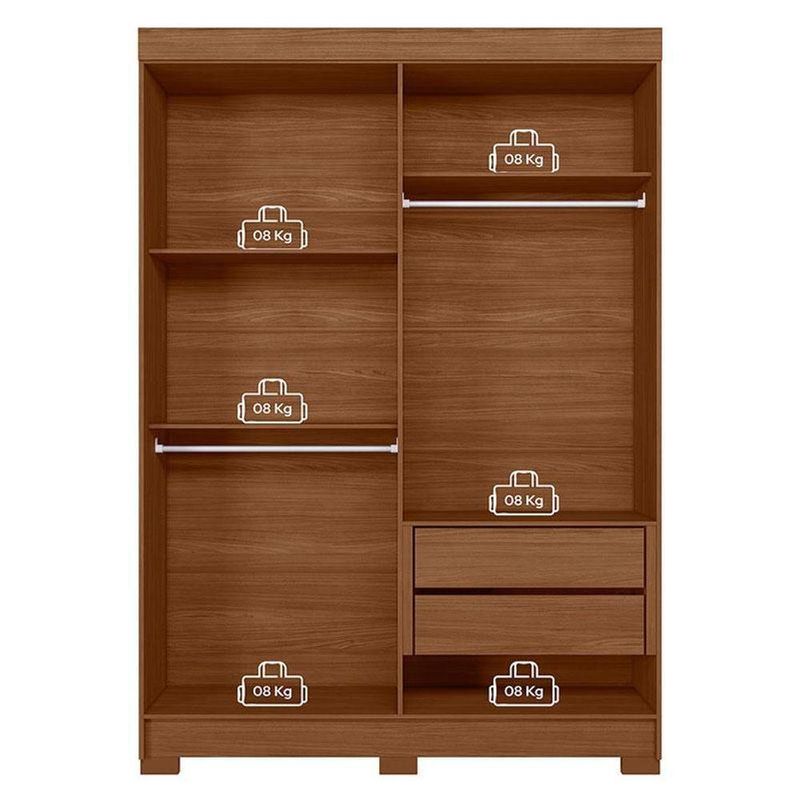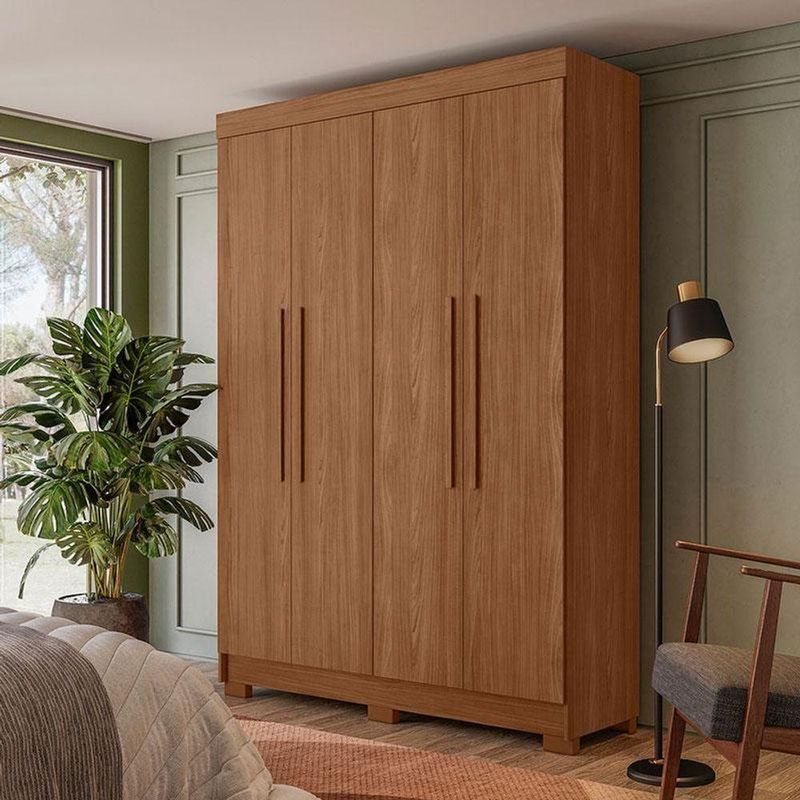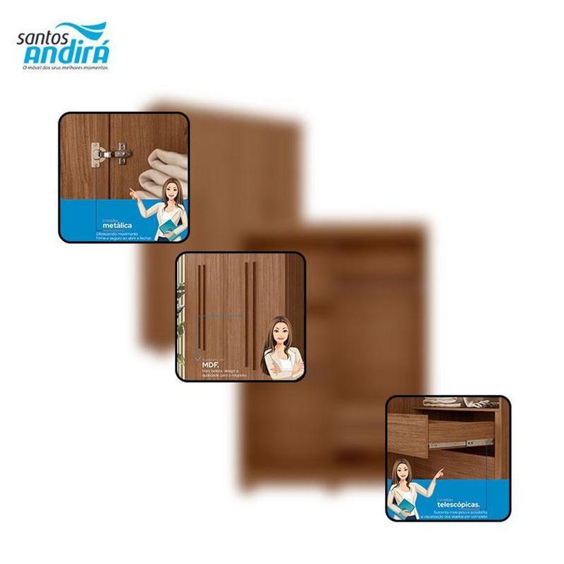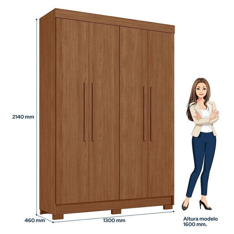 Guarda Roupa Solteiro 4 Portas Sarandi Jatobá - Santos AndiráGuarda Roupa Solteiro 4 portas Sarandi Jatobá - Santos AndiráGuarda Roupa Solteiro 4 portas Sarandi Jatobá: O Sarandi 4 portas é um móvel prático e com ótimo espaço para quem precisa organizar o quarto. Gavetas com corrediças telescópicas e puxadores revestidos dão um acabamento bonito, enquanto o espaço interno ajuda a manter tudo em ordem.Características técnicas:- Desenvolvida em MDP- Pintura em Verniz Fosco- 02 Gavetas internas com corrediças telescópicas- Puxadores em MDF revestidos.- 02 Cabideiros/calceiros em aluminio- Pés em PVC- Espaço para sapatos- 04 Amplas prateleirasDimensões:Altura: 214 cmLargura: 130 cmProfundidade: 46 cmInformações importantes:* Não acompanha decorações e acessórios* Nossas cargas possuem seguro, portanto, no ato da entrega, confira a quantidade de volumes recebida, e também o estado da embalagem. Se houver qualquer inconsistência, não assine o comprovante de entrega;* O armazenamento do produto no endereço de entrega é de responsabilidade do comprador. Evite apoiar o produto na vertical, bem como evite áreas que deixem o produto exposto a chuva ou umidade excessiva;* Pequenas variações de tonalidade são possíveis, em razão da diferença de resolução da tela onde o anúncio está sendo visualizado. Se notar diferença expressiva, comunicar a empresa antes de efetuar a montagem;* O serviço de entrega contratado contempla a entrega até a primeira área coberta ou portaria, não sendo coberto o ato de subir escadas/elevadores ou adentrar nas residências;* Não nos responsabilizamos pela montagem, desmontagem ou instalação do produto.