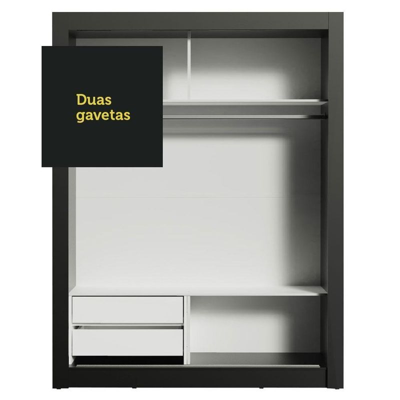 Guarda-roupa Solteiro Dallas 2 Portas de Correr Espelho MadesaCor: Preto/rusticDimensões - Altura: 205 CmDimensões - Largura: 117 CmDimensões - Profundidade: 46 CmProduto: Guarda-roupaMarca: MadesaPeso Aproximado: 75 KgTonalidade: MarromMaterial: MdpRbn: Móveis/móveis de QuartoMaterial Para Filtro: MdpEstado de Origem: RsGarantia: 3 Meses Contra de FabricaçãoO Guarda-Roupa Dallas da Madesa conta com duas portas de correr de deslizamento suave, trilhos em alumínio, dobradiças metálicas e ferragens de qualidade que proporcionam melhor sustentação ao móvel.Um grande diferencial são os espelhos, presentes em uma das portas, um detalhe muito prático para o dia a dia. Além disso, as duas gavetas possuem corrediças metálicas e aumentam o espaço útil do guarda-roupa, pois permitem uma melhor organização de roupas e acessórios.É a escolha ideal para o quarto de solteiro, pois o espaço interno contempla duas prateleiras e três nichos, além de um cabideiro de metal resistente e de tamanho diferenciado, 105 cm, com espaço para roupas longas.O acabamento da parte interna é branco. A estrutura externa é preta e as portas são no padrão amadeirado Rustic. O processo é feito coma Pintura Poliéster de 7 camadas exclusiva da Madesa. Este método é ecológico e aumenta a durabilidade ao móvel.Medidas totais do guarda-roupa: 205 cm de altura x 117 cm de largura x 46 cm de profundidade.Itens inclusos:- Um (1) cabideiro metálico grande- Duas (2) prateleiras e três (3) nichos- Duas (2) gavetas com corrediças metálicas- Duas (2) portas de correr com puxadores em PVC, sendo uma (1) de madeira e uma (1) com espelhosCódigo do produto: 1094D81E2GMarca: MadesaGarantia: Garantia de 3 meses contra de fabricação