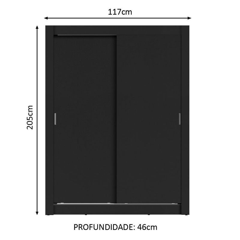 Guarda-roupa Solteiro Madesa Denver 2 Portas De Correr PretoGuarda-Roupa com duas portas de correr de deslizamento suave, trilhos em alumínio, dobradiças metálicas e ferragens de qualidade que proporcionam melhor sustentação ao móvel. Contempla duas prateleiras e quatro nichos, além de um cabideiro de metal resistente e de tamanho diferenciado, 105 cm.Pensado na medida certa para quarto de solteiro, possui acabamento interno branco. A parte externa e as portas são pretas. O processo é feito coma Pintura Poliéster de 7 camadas exclusiva da Madesa. Este processo é ecológico e aumenta a durabilidade ao móvel.Medidas totais do guarda-roupa: 205 cm de altura x 117 cm de largura x 46 cm de profundidade.Imagens meramente ilustrativas.Itens inclusos:- Um (1) cabideiro metálico grande- Duas (2) prateleiras e quatro (4) nichos- Duas (2) portas de correr com puxadores em PVCCódigo do produto: 10948NObs.: A Madesa não oferece serviço de montagem. A embalagem acompanha ferragens e manual com todos os passos para a montagem do produto.1 – O produto é ou ?R.: Todos os produtos da Madesa são novos, enviados da nossa fábrica diretamente para as casas de nossos clientes.2 – O produto vem montado? Se não, vocês realizam a montagem?R.: A Madesa não disponibiliza serviço de montagem. Todos os produtos seguem com manual de instalação e as ferragens necessárias. Alguns produtos possuem vídeo explicando o passo a passo da montagem.3 – Vocês possuem física? Posso retirar meu produto em mãos?R.: Não possuímos física, apenas virtual. Confira as opções de ao colocar o seu CEP.4 – Qual é o valor do ? Posso pagar separadamente?R.: O valor do é calculado com base no peso e volume do produto, e no CEP de destino. Você pode calcular o valor e prazo de no simulador.5 – A Madesa em ? Como é feita a ?R.: Sim, entregamos no inteiro através de transportadoras parceiras.6 – O produto acompanha ?R.: Sim, todos os produtos são entregues com suas respectivas .7 – Os produtos possuem garantia?R.: Sim. A Madesa oferece 3 meses de garantia para defeitos de fabricação. Cor: Preto | Garantia: 3 meses contra defeitos de fabricação | Dimensões - Altura: 205 cm | Dimensões - Largura: 117 cm | Dimensões - Profundidade: 46 cm | Produto: Guarda-Roupa | Marca: Madesa | Peso aproximado: 57 KG | Tonalidade: Preto | Material: MDP | RBN: Móveis/Móveis de Quarto | Peso Produto Com Embalagem (Kg): 59 | Comprimento Produto Com Embalagem (cm): | Largura Produto Com Embalagem (cm): | Tempo de do Fornecedor (dias): 1 | Altura do Produto com Embalagem (cm): | Nome do Simples no Fornecedor: Guarda-Roupa Solteiro Madesa Denver 2 Portas de Correr - Preto | Estado de Origem: RS | Material para Filtro: MDP | Instruções/Cuidados: Utilize um pano limpo, levemente umedecido e seque em seguida a superfície. Não usar produtos químicos ou abrasivos para a limpeza. Recomendamos polir seu móvel com lustra-móveis duas a três vezes por ano. | Produto precisa de Montagem?: Sim, sugerimos a contratação do nosso serviço de montagem (para os CEPs em que o serviço está disponível) ou de algum experiente de sua preferência | Conteúdo da embalagem: 1 Guarda-Roupa | Descrição do Tamanho: 205 cm x 117 cm x 46 cm | Fabricante: Madesa | Cor: Preto