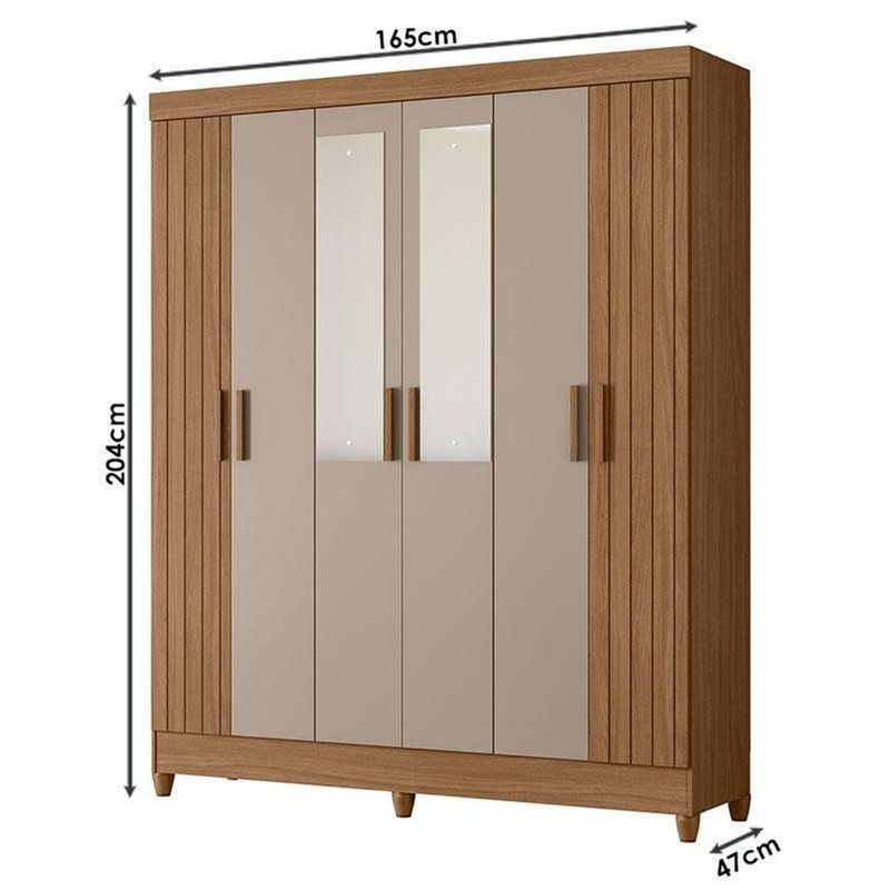 Guarda Roupa Solteiro Uruguai 6 Portas Carvalho Fendi Com Espelho - MovalGuarda Roupa Solteiro Uruguai 6 Portas Carvalho Fendi com Espelho - Moval Começou a montar seu quarto? Então apresentamos para você este belo guarda roupa da linha Uruguai. Possuindo seis portas, sendo as duas portas centrais com espelho e detalhes frisados nas laterais acrescentando um toque sofisticado. Seus puxadores em MDF dão mais resistência e um acabamento refinado. Internamente, conta com duas gavetas equipadas com corrediças metálicas. Além disso, seus pés em PVC entregam mais estabilidade e facilidade na hora da limpeza. Fabricado pela Moval, é desenvolvido em MDP/ MDF de alta qualidade, sendo a escolha perfeita para quem busca um amplo espaço interno com um design moderno e acabamento impecável, aproveite!Características Técnicas:- Desenvolvido em MDP/ MDF - Pintura na cor Carvalho Fendi - Acabamento UV - Possui 06 portas - Possui 02 gavetas - Possui 04 prateleiras - Cabideiro e calceiro em alumínio - Puxadores em MDF - Corrediças metálicas - Detalhes frisados - Acompanha espelho - Pés em PVC - Design modernoDimensões: Altura: 204 cm Largura: 165 cm Profundidade: 47 cm OBS: Não acompanha decorações, utensílios, eletros e acessórios.Informações importantes: - Não realizamos a montagem ou instalação do produto, porém acompanha manual de instruções. - Toda mercadoria segue segurada contra qualquer sinistro, em caso de anormalidade, recuse. - As caixas ou pacotes possuem identificação com o nome, cidade e quantidades de volumes relativos à compra para conferencia do recebedor. NA