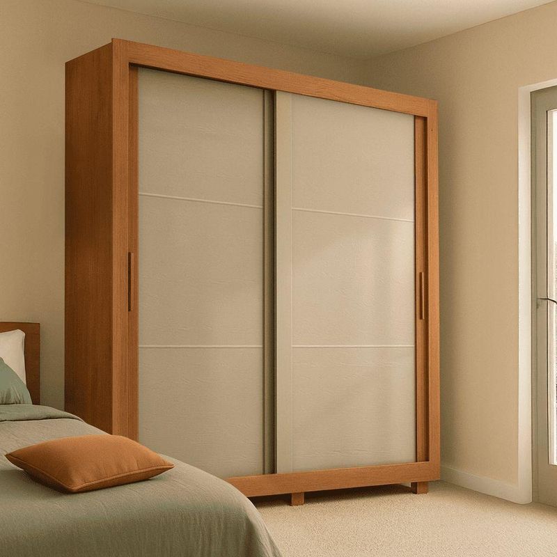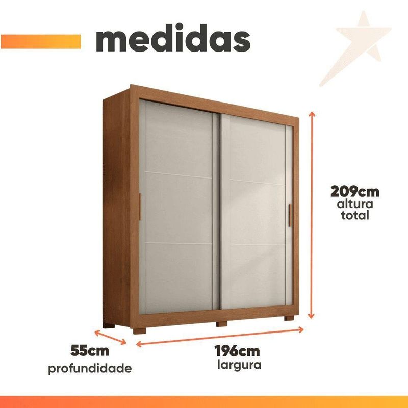 Guarda Roupas Casal 2 Portas De Correr 4 Gavetas Siena Madeirado / AreiaO Guarda Roupa Siena combina design moderno e funcionalidade, sendo a escolha ideal para quem deseja otimizar e organizar o espaço com elegância. Conta com duas portas de correr que garantem praticidade no dia a dia, além de um excelente aproveitamento interno. Possui seis prateleiras, maleiro espaçoso e quatro gavetas com corrediças telescópicas, proporcionando maior amplitude de abertura e facilidade. Puxadores em MDF, cabideiro metálico e seis pés, ideal para facilitar a limpeza em baixo do guarda roupa.MEDIDAS:[ A ] = 209 cm[ L ] = 196 cm[ P ] = 55,3 cmMEDIDA DOS PÉS:[ A ] = 5 cm[ L ] = 10 cm[ P ] = 5 cmPESO: 138 kgPESO SUPORTADO: 58 kgGAVETAS SUPORTAM ATÉ: 3 kgPRATELEIRAS SUPORTAM ATÉ: 4 kgCABIDEIRO SUPORTA ATÉ: 5 kgMODELO: Guarda Roupas Casal 2 Portas de Correr 4 Gavetas SienaMARCA: ZanziniTIPO DE PINTURA: Semi FoscoACABAMENTO: UV VernizMATERIAL: MDPESPESSURA DO MATERIAL: 12mmPORTAS: 2 (Portas de correr)GAVETAS: 4PRATELEIRAS: 6QUANTIDADE DE CABIDEIRO: 2CABIDEIROS: MetálicosCORREDIÇAS: TelescópicasPUXADOR: MDFQUANTIDADE DE PÉS: 6MATERIAL DOS PÉS: PlásticoGARANTIA: 3 MesesSISTEMA DE MONTAGEM: Parafusos auto atarraxantes, cola, cavilhas, pregosImportante sobre a entrega: A entrega é realizada até a portaria ou porta de entrada do endereço indicado, desde que o acesso seja permitido. Para locais com portaria, a entrega será feita no piso térreo. Não realizamos montagem, desmontagem, transporte por escadas ou içamento. É responsabilidade do cliente verificar se as dimensões do produto são compatíveis com portas, elevadores e corredores. Evite imprevistos: confira todos os detalhes antes de concluir sua compra. MEDIDAS:: [ A ] = 209 cm [ L ] = 196 cm [ P ] = 55,3 cm | MEDIDA DOS PÉS:: [ A ] = 5 cm [ L ] = 10 cm [ P ] = 5 cm | PESO:: 138 kg | PESO SUPORTADO:: 58 kg | GAVETAS SUPORTAM ATÉ:: 3 kg | PRATELEIRAS SUPORTAM ATÉ:: 4 kg | CABIDEIRO SUPORTA ATÉ:: 5 kg | MODELO:: Guarda Roupas Casal 2 Portas de Correr 4 Gavetas Siena | MARCA:: Zanzini | TIPO DE PINTURA:: Semi Fosco | ACABAMENTO:: UV Verniz | MATERIAL:: MDP | ESPESSURA DO MATERIAL:: 12mm | PORTAS:: 2 (Portas de correr) | GAVETAS:: 4 | PRATELEIRAS:: 6 | QUANTIDADE DE CABIDEIRO:: 2 | CABIDEIROS:: Metálicos | CORREDIÇAS:: Telescópicas | PUXADOR:: MDF | QUANTIDADE DE PÉS:: 6 | MATERIAL DOS PÉS:: Plástico | GARANTIA:: 3 Meses | SISTEMA DE MONTAGEM:: Parafusos auto atarraxantes, cola, cavilhas, pregos | AVISO:: Importante sobre a entrega: A entrega é realizada até a portaria ou porta de entrada do endereço indicado, desde que o acesso seja permitido. Para locais com portaria, a entrega será feita no piso térreo. | Altura: 209 cm | Largura: 196 cm | Profundidade: 55,3 cm | Requer montagem: Sim | Altura da embalagem: 31 cm | Comprimento da embalagem: 207 cm | Largura da embalagem: 62 cm | Peso da embalagem: 13800 g | Cor: Madeirado / Areia