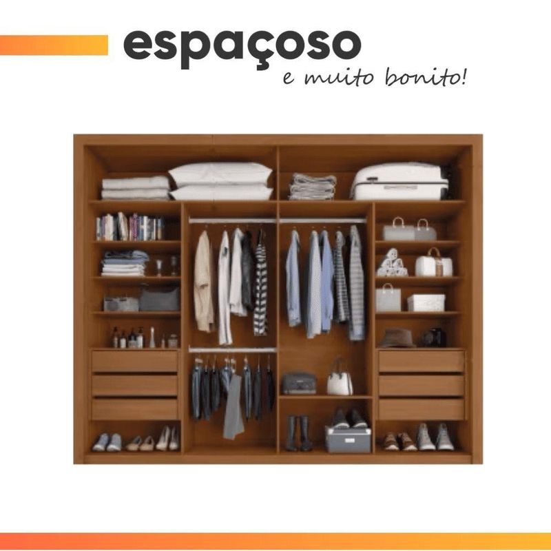 Guarda Roupas Casal 2 Portas De Correr 6 Gavetas Modena MadeiradoO Guarda Roupa Modena foi desenvolvido para aliar praticidade e elegância, proporcionando um espaço amplo e bem distribuído para organizar suas roupas, edredons, travesseiros e calçados com eficiência. Seu design moderno e sofisticado conta com duas portas de correr, agregando funcionalidade e sofisticação ao ambiente. Com seis gavetas espaçosas, as duas primeiras de cada lado possuem divisórias inteligentes, para armazenar pequenos itens com mais organização. Além disso, suas corrediças telescópicas garantem uma abertura suave e completa, proporcionando mais conforto no uso diário! O Guarda Roupa Modena é a escolha perfeita para quem busca beleza, qualidade e durabilidade em um único móvel.MEDIDAS:[ A ] = 232 cm[ L ] = 272,5 cm[ P ] = 55,6 cmPESO: 216 kgPESO SUPORTADO: 81 kgGAVETAS SUPORTAM ATÉ: 3 kgPRATELEIRAS SUPORTAM ATÉ: 6 kgCABIDEIRO SUPORTA ATÉ: 5 kgMODELO: Guarda Roupas Casal 2 Portas de Correr 6 Gavetas ModenaMARCA: ZanziniTIPO DE PINTURA: FoscoACABAMENTO: TexturizadoMATERIAL: MDPESPESSURA DO MATERIAL: 15mmPORTAS: 2 (Portas de correr)GAVETAS: 6 (2 primeiras com divisória)PRATELEIRAS: 7QUANTIDADE DE CABIDEIRO: 3CABIDEIROS: MetálicosCORREDIÇAS: TelescópicasPUXADOR: MDFGARANTIA: 3 MesesDIFERENCIAL: Duas gavetas com divisórias organizadoras, corrediça telescópicas, porta com amplo espelho.SISTEMA DE MONTAGEM: Parafusos auto atarraxantes, cola, cavilhas, pregos, minifixImportante sobre a entrega: A entrega é realizada até a portaria ou porta de entrada do endereço indicado, desde que o acesso seja permitido. Para locais com portaria, a entrega será feita no piso térreo. Não realizamos montagem, desmontagem, transporte por escadas ou içamento. É responsabilidade do cliente verificar se as dimensões do produto são compatíveis com portas, elevadores e corredores. Evite imprevistos: confira todos os detalhes antes de concluir sua compra. MEDIDAS:: [ A ] = 232 cm [ L ] = 272,5 cm [ P ] = 55,6 cm | PESO:: 216 kg | PESO SUPORTADO:: 81 kg | GAVETAS SUPORTAM ATÉ:: 3 kg | PRATELEIRAS SUPORTAM ATÉ:: 6 kg | CABIDEIRO SUPORTA ATÉ:: 5 kg | MODELO:: Guarda Roupas Casal 2 Portas de Correr 6 Gavetas Modena | MARCA:: Zanzini | TIPO DE PINTURA:: Fosco | ACABAMENTO:: Texturizado | MATERIAL:: MDP | ESPESSURA DO MATERIAL:: 15mm | PORTAS:: 2 (Portas de correr) | GAVETAS:: 6 (2 primeiras com divisória) | PRATELEIRAS:: 7 | QUANTIDADE DE CABIDEIRO:: 3 | CABIDEIROS:: Metálicos | CORREDIÇAS:: Telescópicas | PUXADOR:: MDF | GARANTIA:: 3 Meses | DIFERENCIAL:: Duas gavetas com divisórias organizadoras, corrediça telescópicas, porta com amplo espelho. | SISTEMA DE MONTAGEM:: Parafusos auto atarraxantes, cola, cavilhas, pregos, minifix | AVISO:: Importante sobre a entrega: A entrega é realizada até a portaria ou porta de entrada do endereço indicado, desde que o acesso seja permitido. Para locais com portaria, a entrega será feita no piso térreo. | Altura: 232 cm | Largura: 272,5 cm | Profundidade: 55,6 cm | Altura da embalagem: 38 cm | Comprimento da embalagem: 265 cm | Largura da embalagem: 56 cm | Peso da embalagem: 202450 g | Requer montagem: Sim | Cor: madeirado