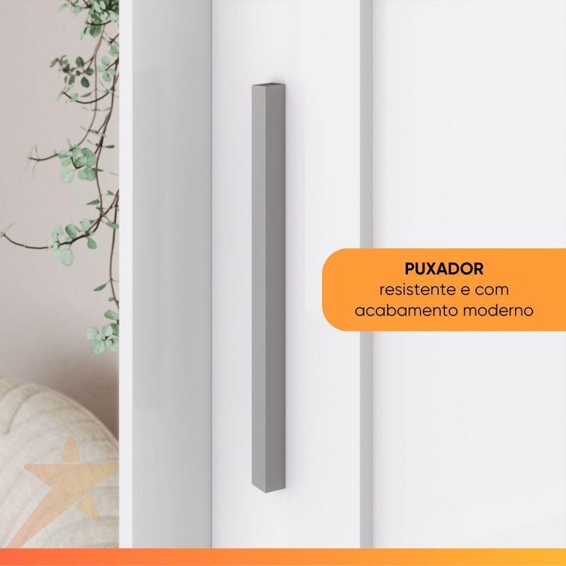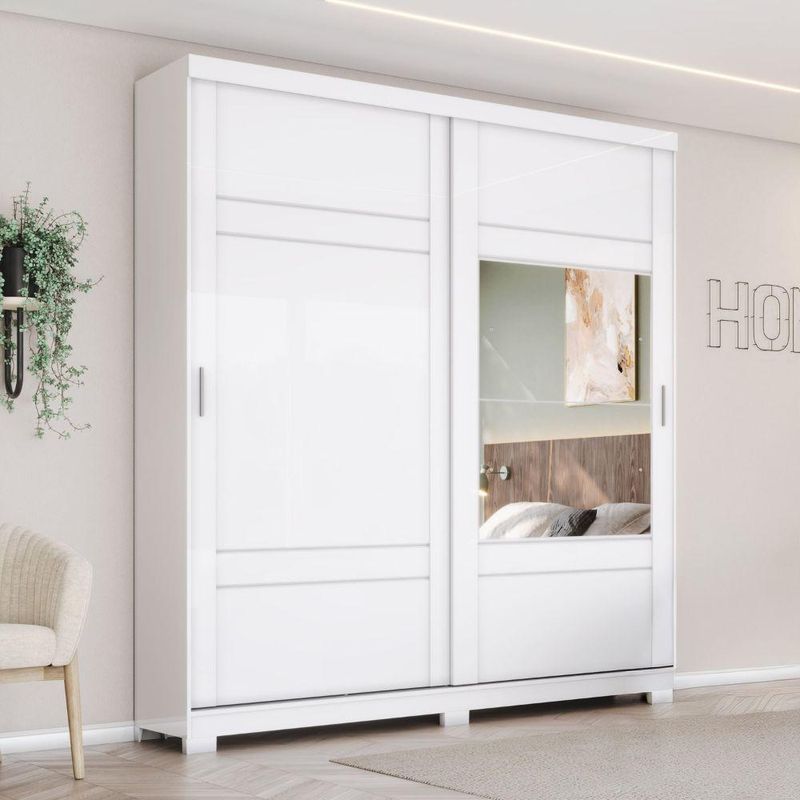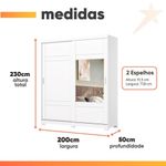 Guarda Roupas Casal 2 Portas De Correr Com Espelho 3 Gavetas Dalia BrancoO Guarda-Roupa Casal Dália une praticidade e elegância em um design moderno. Um de seus grandes destaques são as portas de correr com espelho, que além de otimizar o espaço e ampliar visualmente o ambiente, proporcionam praticidade no dia a dia. Seu interior é bem distribuído, com prateleiras, cabideiros e gavetas, permitindo organizar tudo de maneira funcional. Com excelente capacidade de armazenamento, é a escolha certa para quem busca um móvel versátil e sofisticado.Principais Características:Portas de Correr com Espelho: Otimizam o espaço do quarto, eliminando a necessidade de área para abertura das portas, e o espelho integrado amplia o ambiente, além de ser muito útil no dia a dia.Ótima Divisão Interna: Conta com 5 prateleiras, 2 cabideiros de alumínio e 3 gavetas internas, oferecendo diversas opções para organizar roupas, calçados e acessórios.Design Moderno e Funcional: Puxadores em alumínio e um acabamento de qualidade que se adapta a diversos estilos de decoração.Estrutura de Qualidade: Fabricado em MDP, com corrediças metálicas e pés robustos que garantem a estabilidade e a durabilidade do móvel.Ampla Capacidade: Ideal para casais, com espaço interno pensado para acomodar roupas longas e uma grande quantidade de itens.Especificações Técnicas:Marca: HennModelo: DáliaCor: BrancoMaterial: MDPMedidas Totais (AxLxP): 230 x 200 x 50 cmPortas: 2 portas de correrEspelho: Sim (integrado às portas)Gavetas: 3 gavetas internasCorrediças: MetálicasPrateleiras: 5Cabideiros: 2 em alumínioPuxadores: 2 em AlumínioPés: 6 unidades (Altura: 6 cm)Peso Suportado (Prateleiras): 8 kgPeso Suportado (Gavetas): 3 kgPeso Suportado (Cabideiros): 8 kgPeso Total do Produto: 128 kgItens Inclusos: 1 Guarda-Roupa, Manual de montagem e Kit de ferragens.
