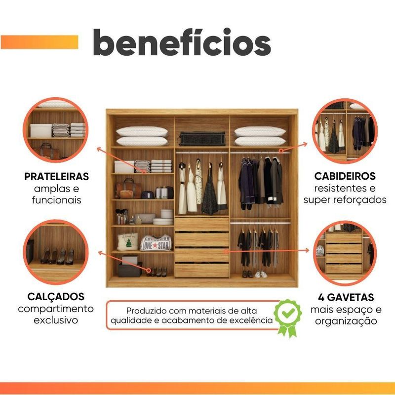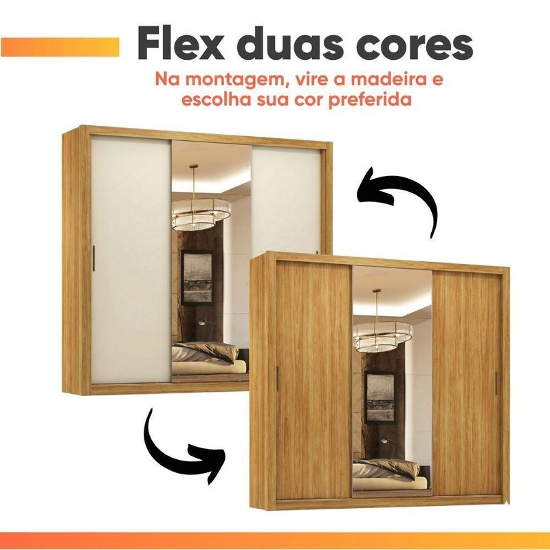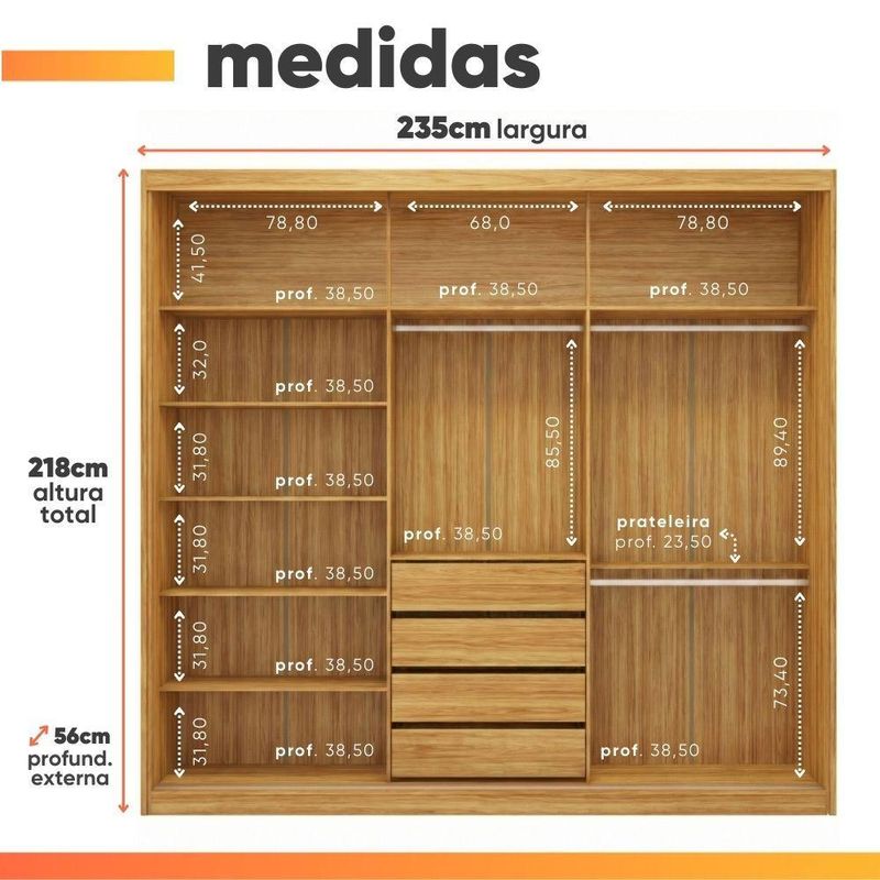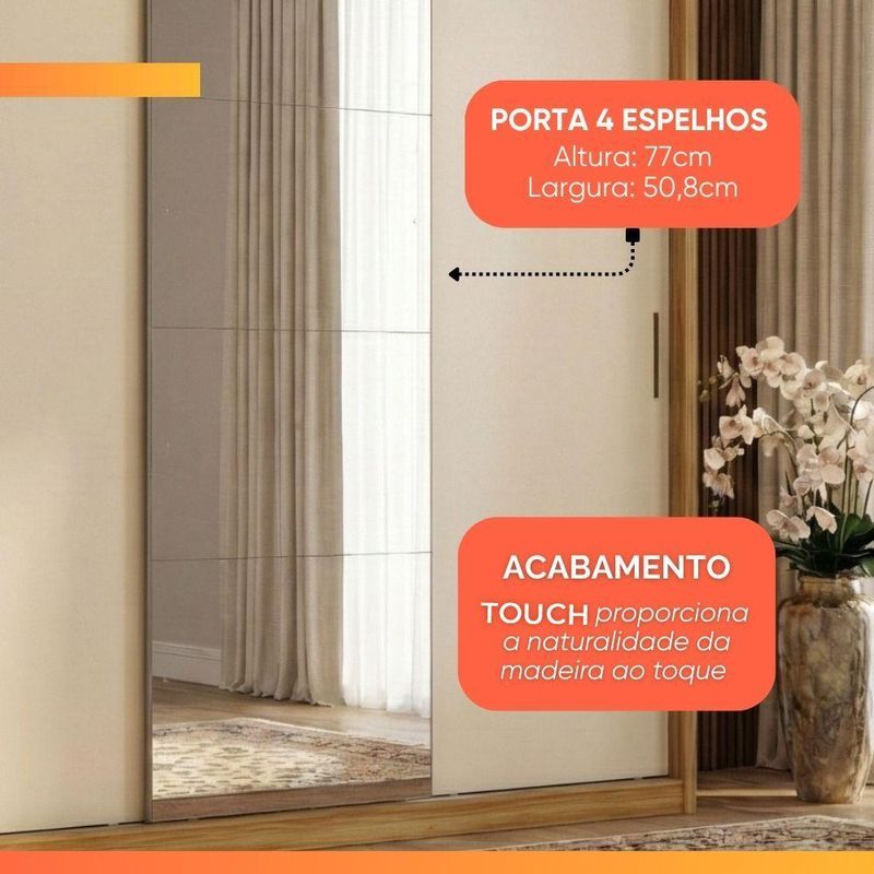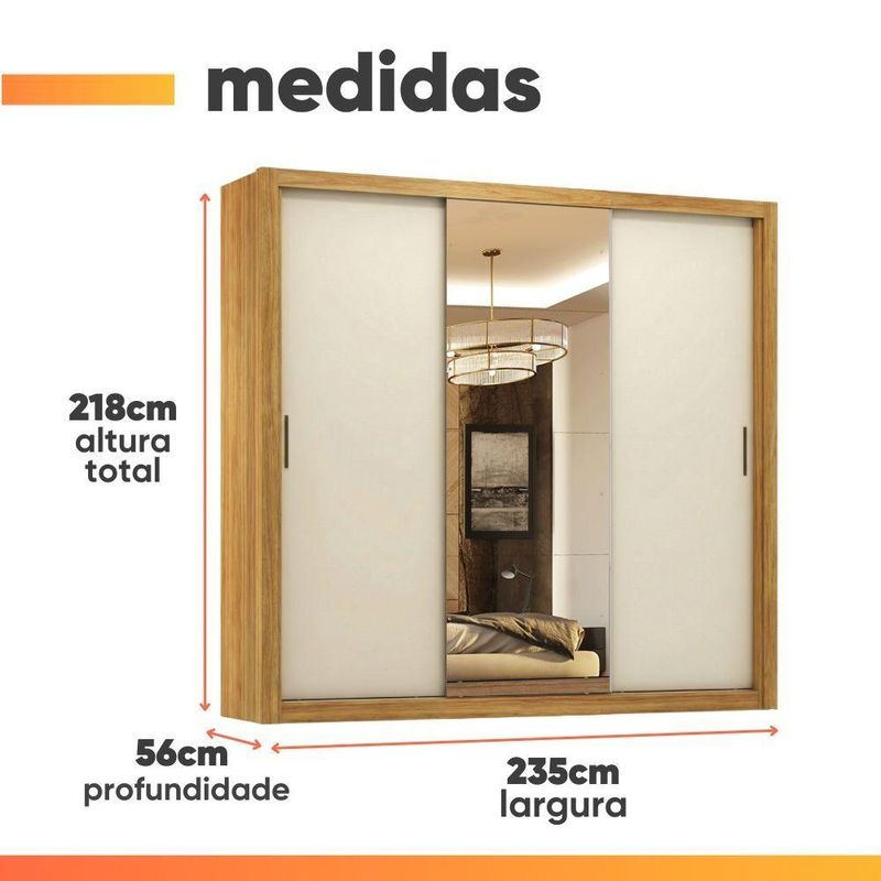 Guarda Roupas Casal Com Espelho 3 Portas De Correr 4 Gavetas 100% Mdf Dalila Flex Madeirado/off WhiteO Guarda Roupas Casal Dalila é um modelo moderno e extremamente funcional, ideal para quem busca praticidade e organização no dia a dia. Ele possui portas de correr que garantem um deslizamento suave e aproveitam melhor o espaço do ambiente. É flex, permitindo que você escolha a cor das portas no momento da montagem, entre duas opções, para combinar perfeitamente com o estilo do seu quarto. Internamente, o Dalila oferece um excelente espaço bem distribuído. Conta com cabideiros para roupas longas e curtas, prateleiras amplas, além de gavetas internas espaçosas que ajudam a manter tudo organizado. O modelo também inclui um espelho central, trazendo mais praticidade e dando sensação de amplitude ao ambiente. Com um design elegante, acabamento touch, o Guarda Roupas Dalila é a escolha perfeita para quem busca beleza, qualidade e um ótimo aproveitamento de espaço.MEDIDAS:A = 218 cmL = 235 cmP = 56 cmMEDIDAS DO ESPELHO (cada):A = 77 cmL = 50,8 cmPRATELEIRAS SUPORTAM ATÉ: 5 kgGAVETAS SUPORTAM ATÉ: 3 kgPESO: 172,75 kgGUARDA ROUPAS SUPORTA ATÉ: 120 kgMODELO: Guarda Roupas Casal com Espelho 3 Portas de Correr 4 Gavetas 100% MDF Dalila FlexMARCA: DemobileTIPO DE PINTURA: UV de qualidadeMATERIAL DA ESTRUTURA: MDFESPESSURA DO MATERIAL DA ESTRUTURA: 12 mmTIPO DE PORTA: Correr, maior praticidade no dia a diaQUANTIDADE DE PORTAS: 3QUANTIDADE DE GAVETAS: 4CORREDIÇAS: TelescópicasQUANTIDADE DE PRATELEIRAS: 8QUANTIDADE DE CABIDEIROS: 3MATERIAL DO CABIDEIRO: AlumínioMATERIAL DO PUXADOR: ABSESPELHO: Sim, 4DIFERENCIAL: Possui um amplo espelho na porta central e sistema flex, permitindo escolher a cor das portas no momento da montagem.ITENS INCLUSOS: 1 Guarda roupas, 1 manual de montagem, 1 kit parafusos.SISTEMA DE MONTAGEM: Parafusos e cavilhasINSTRUÇÕES E CUIDADOS: Para limpeza de seu móvel, use uma flanela limpa e seca. Não utilize produtos químicos que possam danificar o produtoGARANTIA: 3 meses pelo fabricante.Importante sobre a entrega: A entrega é realizada até a portaria ou porta de entrada do endereço indicado, desde que o acesso seja permitido. Para locais com portaria, a entrega será feita no piso térreo. Não realizamos montagem, desmontagem, transporte por escadas ou içamento. É responsabilidade do cliente verificar se as dimensões do produto são compatíveis com portas, elevadores e corredores. Evite imprevistos: confira todos os detalhes antes de concluir sua compra. MEDIDAS:: A = 218 cm L = 235 cm P = 56 cm | MEDIDAS DO ESPELHO (cada):: A = 77 cm L = 50,8 cm | PRATELEIRAS SUPORTAM ATÉ:: 5 kg | GAVETAS SUPORTAM ATÉ:: 3 kg | PESO:: 172,75 kg | GUARDA ROUPAS SUPORTA ATÉ:: 120 kg | MODELO:: Guarda Roupas Casal com Espelho 3 Portas de Correr 4 Gavetas 100% MDF Dalila Flex | MARCA:: Demobile | TIPO DE PINTURA:: UV de qualidade | MATERIAL DA ESTRUTURA:: MDF | ESPESSURA DO MATERIAL DA ESTRUTURA:: 12 mm | TIPO DE PORTA:: Correr, maior praticidade no dia a dia | QUANTIDADE DE PORTAS:: 3 | QUANTIDADE DE GAVETAS:: 4 | CORREDIÇAS:: Telescópicas | QUANTIDADE DE PRATELEIRAS:: 8 | QUANTIDADE DE CABIDEIROS:: 3 | MATERIAL DO CABIDEIRO:: Alumínio | MATERIAL DO PUXADOR:: ABS | ESPELHO:: Sim, 4 | DIFERENCIAL:: Possui um amplo espelho na porta central e sistema flex, permitindo escolher a cor das portas no momento da montagem. | ITENS INCLUSOS:: 1 Guarda roupas, 1 manual de montagem, 1 kit parafusos. | SISTEMA DE MONTAGEM:: Parafusos e cavilhas | INSTRUÇÕES E CUIDADOS:: Para limpeza de seu móvel, use uma flanela limpa e seca. Não utilize produtos químicos que possam danificar o produto | GARANTIA:: 3 meses pelo fabricante. | AVISO:: Importante sobre a entrega: A entrega é realizada até a portaria ou porta de entrada do endereço indicado, desde que o acesso seja permitido. Para locais com portaria, a entrega será feita no piso térreo. | Altura: 218 cm | Largura: 235 cm | Profundidade: 56 cm | Requer montagem: Sim | Comprimento da embalagem: 235 cm | Largura da embalagem: 79 cm | Peso da embalagem: 17275 g | Altura da embalagem: 49,2 cm | Cor: Madeirado/Off White