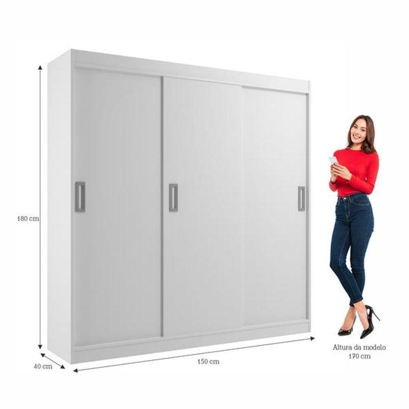 Guarda Roupas Casal Lisboa 3 Portas De Correr E 2 Gavetas - Branco BrancoO Guarda Roupas Lisboa é daquele tipo de peça que além de ajudar na organização da rotina do dormitório, ainda deixa ele muito mais agradável e com uma decoração moderna. A estrutura oferece gavetas para os acessórios pessoais e cabideiros para as roupas que vão penduradas.Tamanho do produto montado: - Altura: 180 cm | Largura: 150 cm | Profundidade: 40 cm. Produto em MDP, possui 2 gavetas e 3 Portas de corre não possui espelho.Especificações TécnicasCaracterísticas: Estrutura em MDP 3 Portas 2 GavetasCorrediças plásticasPeso: 67,00 kgQuantidade de Gavetas: 2Peso Suportado nas Gavetas (Kg): 10 KgMaterial das Corrediças: MetalicaTipo da Corrediça: ConvencionalQuantidade de Portas: 3Material da Porta: MDPEspessura da Porta: 12 mmTipo de Porta: Portas de CorrerMaterial das Dobradiças: AlumínioPossui Espelho? NãoMaterial do Puxador: PlásticoMaterial da Estrutura: MDPEscala de Brilho: FoscoEspessura do Tampo (mm):12 mmPossui Rodízios? NãoPossui Sapatas? NãoPés com regulagem de altura? NãoPossui Borda de PVC nas Bordas? NãoMaterial das Dobradiças: AlumínioMaterial das Corrediças: PlásticoPeso Suportado nas Gavetas (kg) 10Material do Puxador: PlásticoQuantidade de Puxadores: 03Como os Móveis Chegarão na Minha Casa: Desmontado em caixas, acompanhado de todas as peças, ferragens e manuais para montagem.Grau de Dificuldade da Montagem: MédioNecessita de Montagem: SimSistema de Montagem: Parafs e minifixGarantia (dias) 90Indicação de :QuartoRecomendação de ManutençãoUsar pano seco ou levemente umedecido, não usar produtos abrasivos NA Cor: Branco