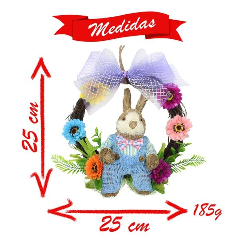 Guirlanda Artesanal Enfeite Páscoa Coelhinho Palha Florida 25cm - Com seu acabamento de qualidade, é perfeita para decorar seu lar ou presentear quem você ama Medidas: 25cm de altura 25cm de comprimento Material: Palha, plástico e tecido Características Gerais do Produto: Garantia: • Garantia do site - 1 Mês