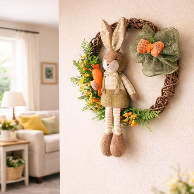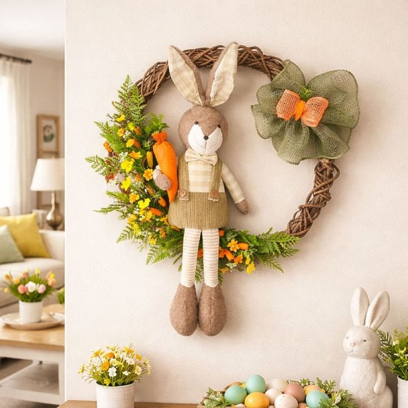 Guirlanda Coelho Pernas Mole Decoração Arranjo Páscoa 60cm - Deixe sua decoração de Páscoa ainda mais encantadora com essa linda guirlanda de coelho com pernas moles! Perfeita para portas, paredes ou ambientes internos, ela traz um toque acolhedor, criativo e cheio de personalidade para sua casa Detalhes: Material: Cipó, Plástico e Tecidos Tamanho grande: 60cm Ideal para portas, paredes e vitrines Decoração temática de Páscoa Conteúdo do pacote: 01 Guirlanda Páscoa Coelho Pernas Mole 60cm Características Gerais do Produto: • Material: Plástico; Tecido • Modelo: Guirlanda de Páscoa • Cor: Verde • Dimensões aproximadas: Diâmetro 60cm Garantia: • Garantia do site - 1 Mês