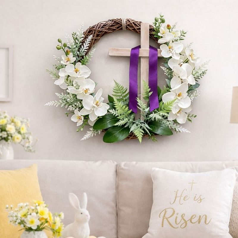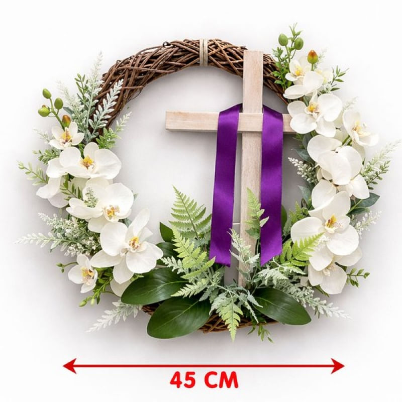 Guirlanda Cruz Sagrada Flores Decoração Enfeite Páscoa 45cm - Leve fé, beleza e significado para sua decoração de Páscoa com esta linda guirlanda em formato de cruz, adornada com flores delicadas. Ideal para portas, paredes ou ambientes religiosos, ela transmite paz, espiritualidade e o verdadeiro sentido da Páscoa Detalhes do produto: Material: Madeira e plástico Ideal para decoração de Páscoa cristã Pode ser usada em portas, paredes, salas, igrejas e capelas Tema: Religioso / Páscoa Cristã Diâmetro aproximado: 45 cm Conteúdo do pacote: 1x Guirlanda Cruz Decoração Páscoa 45cm Características Gerais do Produto: • Material: Plástico; Isopor • Modelo: Guirlanda de pascoa • Cor: Verde • Dimensões aproximadas: Diâmetro 45cm Garantia: • Garantia do site - 1 Mês
