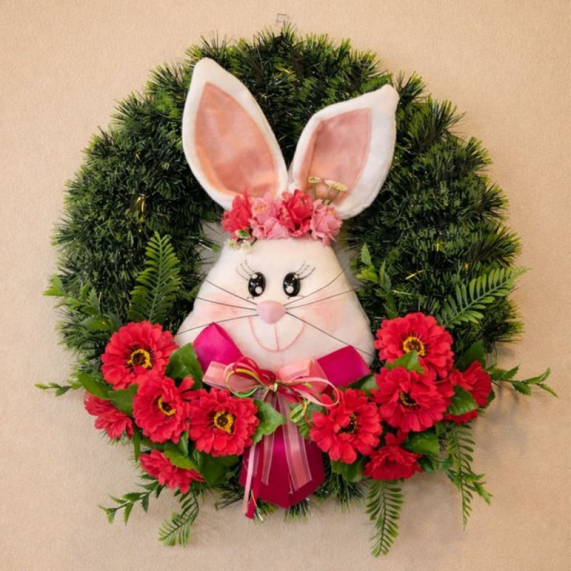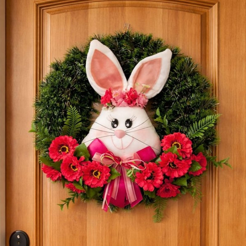 Guirlanda De Páscoa Decoração Cabeça De Coelho Arranjo 40cm Rosa - Encante sua casa nesta Páscoa com uma guirlanda decorativa de cabeça de coelho, perfeita para criar um ambiente acolhedor, alegre e temático. Com acabamento delicado e design charmoso, é ideal para portas, paredes, vitrines e decorações especiais de Páscoa Detalhes do produto: Diâmetro: 40 cm Tema: Páscoa / Coelho Tipo: Guirlanda decorativa Uso: porta de entrada, parede, sala, vitrine e eventos Embalagem: 1x Guirlanda Páscoa Decoração Cabeça De Coelho 40cm Características Gerais do Produto: • Material: Plástico • Modelo: Guirlanda de pascoa • Cor: Verde • Dimensões aproximadas: Diâmetro 40cm Garantia: • Garantia do site - 1 Mês