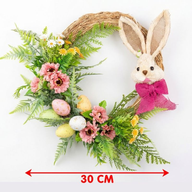 Guirlanda De Páscoa Decoração Coelho Rosa Ovos Arranjo 30cm - Deixe sua casa ainda mais charmosa nesta Páscoa com esta linda guirlanda artesanal. Composta por coelho decorativo, ovos temáticos e arranjo harmonioso, é perfeita para decorar portas, paredes ou ambientes internos, trazendo um clima acolhedor e festivo Destaques do produto: Diâmetro: 30 cm Material: base decorativa com elementos artificiais Cor: sortida conforme composição Uso: interno ou externo coberto Embalagem: 1x Guirlanda de Páscoa com Cabeça de Coelho 30cm Características Gerais do Produto: • Material: Plástico; Isopor • Modelo: Guirlanda de pascoa • Cor: Colorido • Dimensões aproximadas: Diâmetro 30cm Garantia: • Garantia do site - 1 Mês