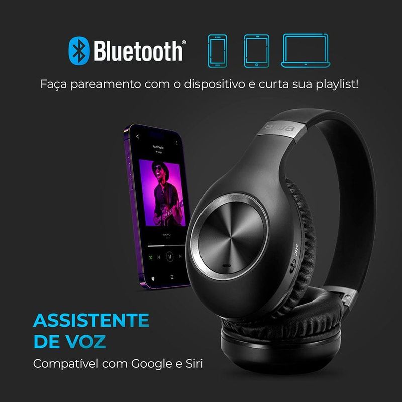 O Headphone Aiwa AWS-HP-02-B é muito confortável, perfeito para uso prolongado, seja no trabalho, em exercícios, ouvindo podcasts ou nos momentos de relaxamento curtindo sua playlist. Ele possui cancelamento ativo de ruído, proporcionando uma verdadeira experiência imersiva.A tecnologia bluetooth 5.1 proporciona uma conexão ágil e estável, e garante uma transmissão de uma distância de até 10 metros. Ele também é compatível com assistentes de voz Google Assistente e Siri. Ele oferece ainda entrada auxiliar P2, microfone embutido, controle de toque nos botões e oferece um áudio excelente.