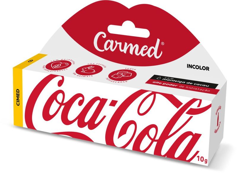 Hidratante Labial Carmed Coca Cola Incolor 10g O Hidratante Labial Carmed Coca Cola Incolor 10g é o cuidado ideal para manter seus lábios sempre macios, hidratados e protegidos contra agressões externas. Com fórmula incolor, ele preserva a aparência natural da boca, ao mesmo tempo em que proporciona um aroma refrescante e irresistível de Coca-Cola, transformando sua rotina de cuidados em uma experiência única. Benefícios Hidratação profunda e prolongada, combatendo o ressecamento. Protege contra os efeitos do vento, frio e poluição. Fórmula incolor, que valoriza o tom natural dos lábios. Previne rachaduras e descamações, mantendo os lábios saudáveis. Contém ativos que ajudam a reter a umidade natural da pele. Aroma exclusivo de Coca-Cola, divertido e refrescante. Por que escolher o Carmed Labial Coca Cola? Marca referência em cuidado labial eficaz. Textura leve e confortável, ideal para uso diário. Pode ser usado sozinho ou como base antes do batom. Compacto e prático, cabe em qualquer nécessaire ou bolso. Como usar Aplique uma camada fina diretamente nos lábios sempre que sentir necessidade. Reaplique antes da exposição ao sol, vento ou ambientes com ar-condicionado. Use diariamente para manter os lábios hidratados, protegidos e macios.