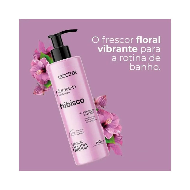 Hidratante para Rosto e Corpo Labotrat Dia a Dia Hibisco 190ml O Hidratante para Rosto e Corpo Labotrat Dia a Dia Hibisco 190ml foi desenvolvido para proporcionar nutrição intensa e cuidado diário da pele, combinando textura leve, rápida absorção e fragrância suave de hibisco que desperta os sentidos. Sua fórmula inteligente é enriquecida com prebióticos, colágeno e elastina, ativos que hidratam profundamente, melhoram a firmeza da pele e restauram o equilíbrio natural, mantendo a pele macia, luminosa e saudável o dia todo. Com ação hidratante de longa duração, o Hidratante Labotrat Hibisco é ideal para uso diário no rosto e corpo, garantindo hidratação prolongada, toque aveludado e sensação refrescante desde a primeira aplicação. Perfeito para todos os tipos de pele, especialmente aquelas que buscam maciez, firmeza e proteção contra o ressecamento. Benefícios Hidratação prolongada: Com prebióticos que mantêm o equilíbrio natural da microbiota da pele. Firmeza e elasticidade: O colágeno e a elastina fortalecem e revitalizam a pele. Textura leve e toque aveludado: Rápida absorção sem deixar a pele oleosa. Fragrância suave de hibisco: Perfume delicado e sensação de frescor que dura o dia todo. Cuidado completo: Indicado para uso no rosto e no corpo, ideal para todos os tipos de pele. Modo de Uso Aplicar: Coloque uma quantidade adequada do hidratante nas mãos. Espalhar: Distribua o produto uniformemente sobre o rosto e o corpo. Massagear: Faça movimentos circulares suaves até a completa absorção. Uso Diário: Aplique diariamente após o banho ou sempre que sentir necessidade de hidratação. Segurança e Qualidade Dermatologicamente testado. Fórmula leve e de rápida absorção. Livre de parabenos e cruelty free. Indicado para todos os tipos de pele.