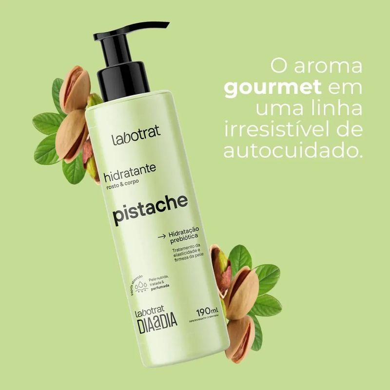 Hidratante para Rosto e Corpo Labotrat Dia a Dia Pistache 190ml O que é e para que serve O Hidratante Labotrat Dia a Dia Pistache é o cuidado essencial que sua pele merece. Com textura leve e rápida absorção, essa loção hidrata profundamente sem deixar a pele oleosa, proporcionando maciez, nutrição e um perfume suave e envolvente. Ideal para uso diário no rosto, corpo e mãos, o hidratante Labotrat mantém a pele protegida contra o ressecamento, deixando-a com aspecto saudável e radiante todos os dias. Benefícios e diferenciais Hidratação diária intensa: protege e evita o ressecamento da pele; Fragrância suave de pistache: perfume delicado e sofisticado, levemente adocicado; Textura leve e de rápida absorção: ideal para todos os tipos de pele; Para corpo e mãos: hidratação completa da cabeça aos pés; Uso diário: perfeito para incluir na sua rotina de cuidados pessoais; Pele macia e nutrida: repõe a umidade natural, garantindo toque aveludado e luminosidade natural. Como usar Após o banho, com a pele limpa e seca, aplique uma quantidade generosa da Loção Hidratante Labotrat Dia a Dia Pistache sobre o corpo e mãos. Massageie suavemente até a completa absorção. Use diariamente ou sempre que sentir necessidade de hidratar a pele. Precauções Uso externo. Evite contato direto com os olhos. Em caso de irritação, suspenda o uso e procure um dermatologista. Mantenha fora do alcance de crianças e conserve em local fresco, ao abrigo da luz solar direta.