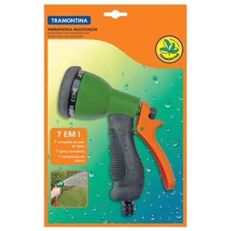 A Hidropistola Multifunção da Tramontina é um produto fabricado com matéria-prima de alta qualidade proporcionando uma irrigação precisa e confiável. Ela possui sistema de bloqueio da água. Essa Hidropistola dispõe de sete regulagens diferentes do jato, e por ser multifuncional, atende as mais diversas necessidades do usuário. E tem também sistema intercambiável que se adapta a todo o sistema de irrigação e dispensa o uso de ferramentas na montagem.