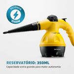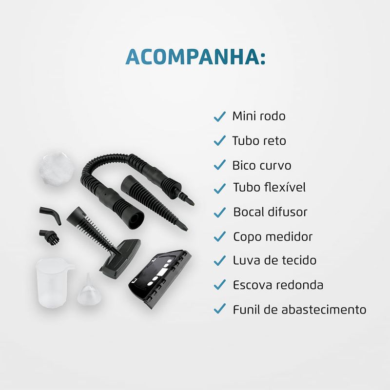 O Higienizador a Vapor Mondial proporciona um ambiente mais puro e livre de sujeiras para sua família. Possui reservatório de 350ml, sendo a maior capacidade da categoria, prolongando a duração da limpeza. O cabo de energia tem 2 metros de comprimento, alcançando lugares mais altos e oferecendo maior mobilidade. Pode ser usado em carros, paredes, sofás, vidros e muitos outros lugares. Saiba mais sobre o HG-01 Mondial: POTÊNCIA: Possui 1000W de potência para uma limpeza potente e rápida. RESERVATÓRIO DE ÁGUA: 350ML: O HG-01 possui a maior capacidade da categoria, prolongando a duração da limpeza. VERSÁTIL: Pode ser usado em carros, paredes, sofás, vidros e muitos outros lugares. VÁLVULA DE SEGURANÇA: Controla a pressão interna do higienizador, proporcionando ainda mais proteção na utilização do produto. CABO DE ENERGIA: 2 METROS: Garante mais mobilidade e agilidade na limpeza, alcançando os cantos da casa. BOTÃO DE ACIONAMENTO: Praticidade na limpeza em um único toque. PRÁTICO DE USAR: O higienizador acompanha mini rodo, tubo reto, bico curvo, tubo flexível, bocal difusor, copo medidor, luva de tecido, escova redonda e funil de abastecimento. UM ANO DE GARANTIA MONDIAL: A Mondial é a escolha de milhões de consumidores. Mondial, a escolha inteligente!