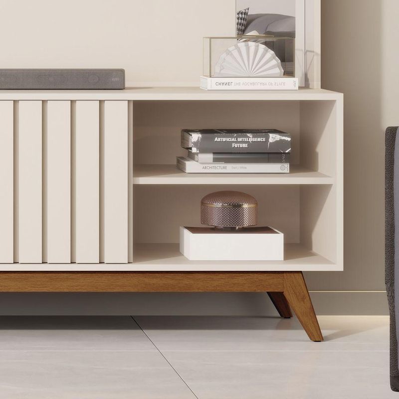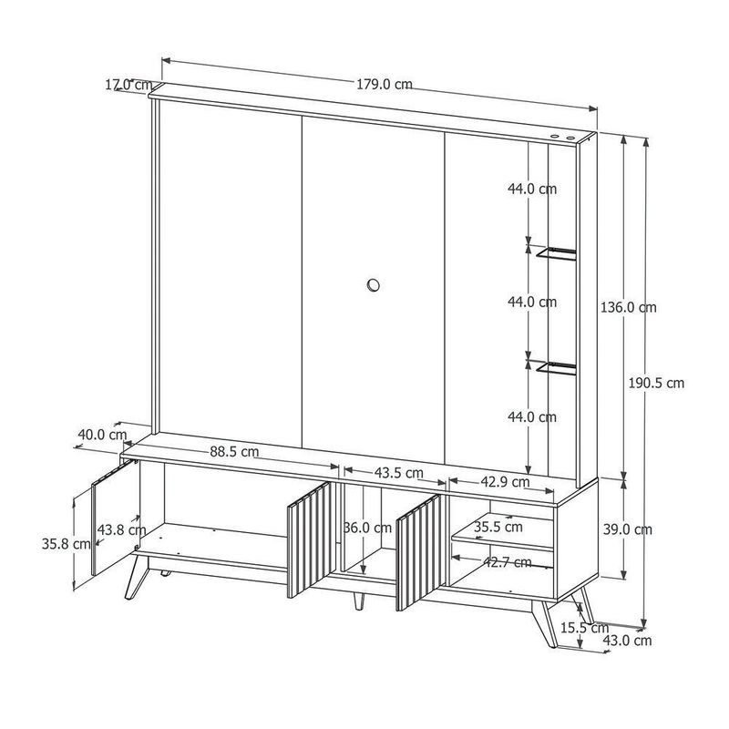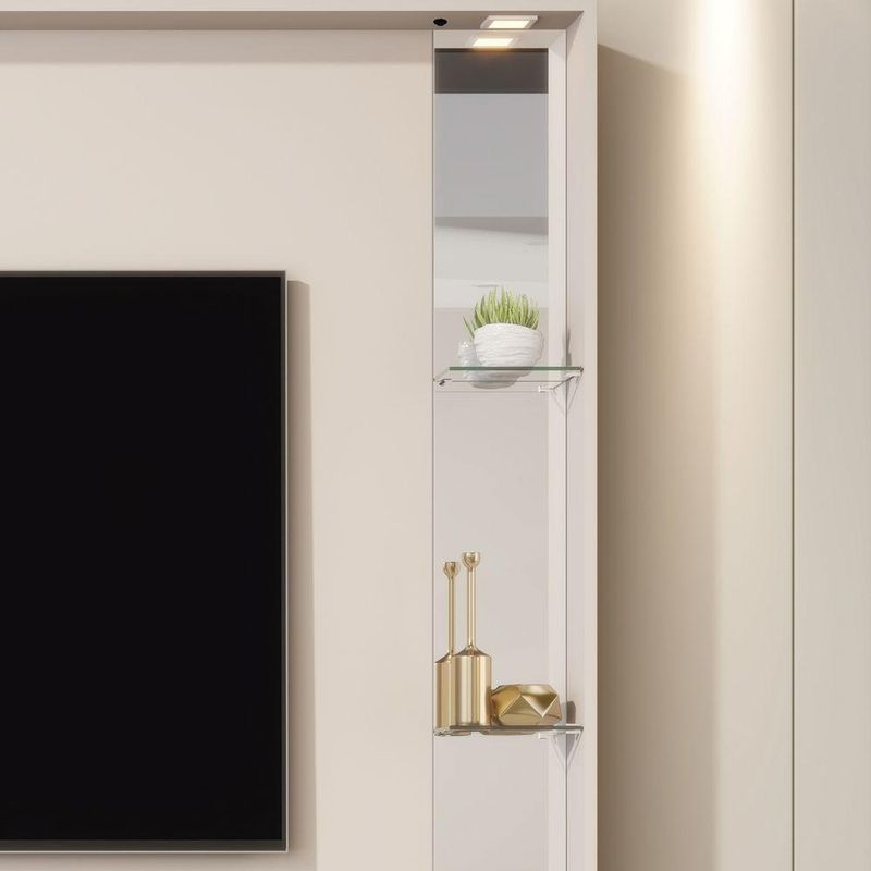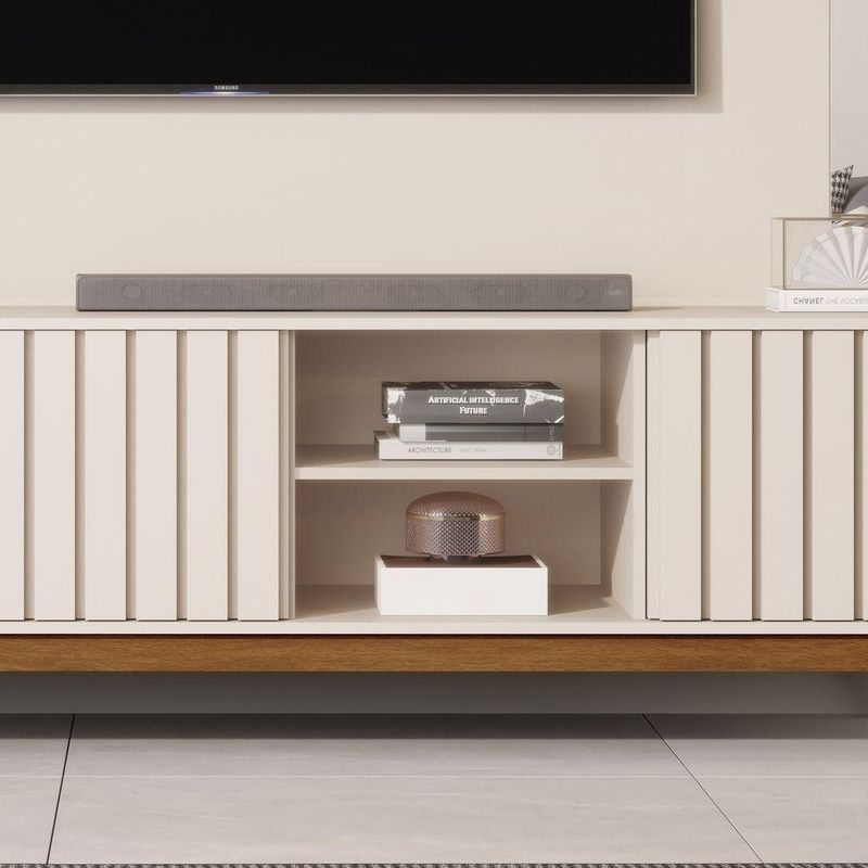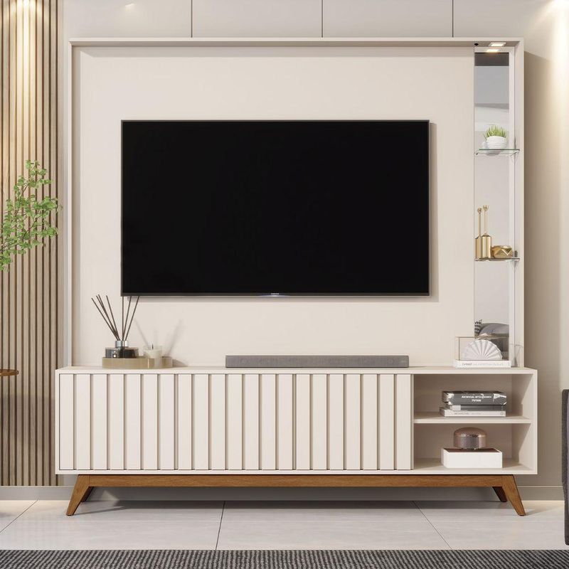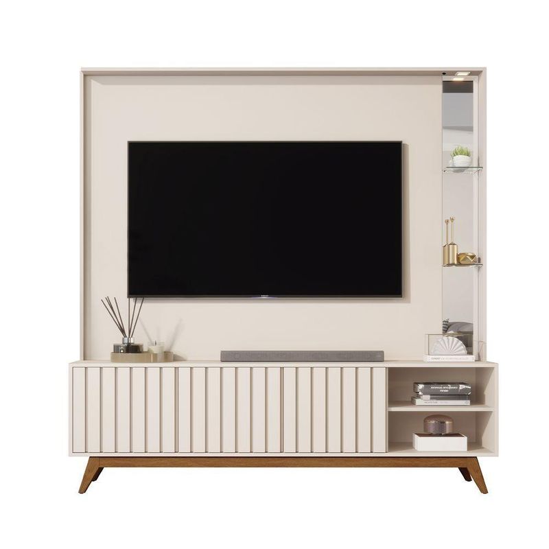 Home Estante Acai 1.8 Off White - Moveis JbCom visual imponente e design funcional, o Home Açaí 1.80 é ideal para quem deseja valorizar a sala de estar com elegância, praticidade e amplo espaço de organização.Compatível com TVs de até 75 polegadas, o conjunto é composto por painel fixo com linhas limpas e uma bancada com tampo usinado, nicho central e portas laterais, oferecendo estrutura completa para acomodar eletrônicos, objetos decorativos e itens do cotidiano.As proporções generosas tornam o ambiente mais sofisticado e acolhedor, enquanto a estrutura firme proporciona estabilidade e durabilidade.Produzido 100% em MDF com acabamento de alto padrão, é a escolha perfeita para quem busca qualidade, beleza e funcionalidade em um só móvel.Dimensões:Altura: 190,5cmLargura: 180cmProfundidade: 43cmObservações:- Produzido 100% em MDF com acabamento refinado- Compatível com TVs de até 75- Painel com visual clean e proporções amplas- Bancada com tampo usinado, portas laterais e nicho central- Estrutura robusta, ideal para composições elegantes e funcionais