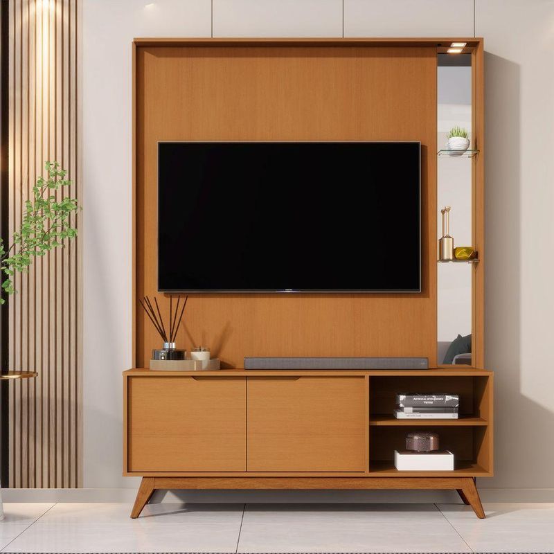 Home Estante Tucuma 1.4 Nature - Moveis JbCom visual imponente e composição completa, o Home Tucumã 1.4 é ideal para quem deseja aliar sofisticação, organização e praticidade em um único móvel.Compatível com TVs de até 60 polegadas, o modelo é composto por um painel fixo e uma bancada integrada com tampo usinado, nicho central e portas laterais com ótimo espaço interno.O design moderno e bem dimensionado valoriza ambientes amplos e integrados, oferecendo funcionalidade sem abrir mão da estética.Fabricado 100% em MDF com acabamento de alto padrão, o Home Tucumã garante resistência, durabilidade e presença marcante na sala de estar.Dimensões:Altura: 190,5 cmLargura: 140 cmProfundidade: 43 cmObservações:- Produzido 100% em MDF com acabamento refinado- Compatível com TVs de até 60- Painel fixo com visual limpo e sofisticado- Bancada com tampo usinado, nicho central e portas laterais- Estrutura robusta, ideal para composições elegantes e funcionais