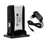 HUB USB 2.0 7 PORTAS COM FONTE KNUP HB-T68Utilizando este incrível Hub de 7 portas USB 2.0 com fonte inclusa, poderá ligar diversos aparelhos e periféricos como teclado, mouse, impressora, hd externo e etc, aproveitando-se da velocidade de transferência de até 480mbps.Devido à baixa corrente elétrica que passa em cada porta, o HUB é ideal para fornecer energia para acessórios conectados, no entanto, ELE NÃO SERVE COMO CARREGADOR DE CELULAR. Celulares precisam de uma demanda maior de corrente elétrica.Especificações:- Cor: Preto com Prata- 7 Portas USB 2.0;- Alta velocidade de transferência: 480mbps;- Compatível com portas USB 2.0 e USB 1.1;- Compatível com sistemas: Windows 98SE/2000/XP/Vista,Windows XP, VISTA, 7, 8 e 10, Linux e Mac;- Alimentação: Fonte de energia bivolt automática;- Instalação automática Plug and Play, não precisa instalar driver;- Comprimento dos cabos: 50 cm (USB), 95 cm (fonte).Especificações da Fonte de Energia:- INPUT AC 110 V 240V 50/60 HZ- OUTPUT: DC 5V 1000 mA- Dimensão Da Embalagem (AxLxP): 10 x 15 x 20 cm.- Peso: 250grItens Inclusos:- 1 x Hub de 7 Portas USB 2.0- 1 x Fonte Bivolt automática- 1 x Cabo USB para ligar no PC/Notebook- 1 x Base de apoio
