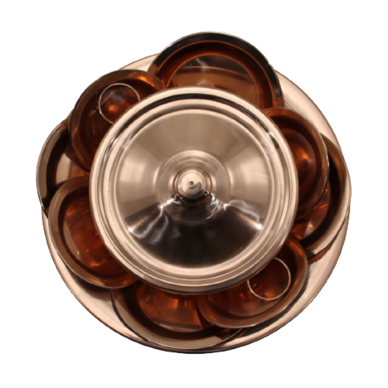 Ibá Adoração Cobre Prato Peças Artigos Religiosos 10 Peças M Ibá é uma palavra da língua iorubá que designa a cabaça que contém os objetos de culto e de adoração a um orixá, elemento simbólico nos altares das religiões de matrizes africanas, muito utilizado nos assentamentos sagrados. Também serve como aparelho de jantar para uso, ou como um objeto de decoração. O cobre é um metal de alta resistência brilho especial e com grande durabilidade. Especificações Técnicas Sopeira: Diâmetro: 20cm. Altura: 7cm. Especificações Técnicas Prato P: Diâmetro: 13,5cm. Especificações Técnicas Prato M: Diâmetro: 15,5cm. Especificações Técnicas Bacia: Diâmetro: 34cm. Obs: Peso Total de Todas as Peças: 1,300kg. Itens Inclusos: 04 Pratos P. 04 Pratos M. 01 Sopeira. 01 Bacia. Código: 014E-M.Arte.