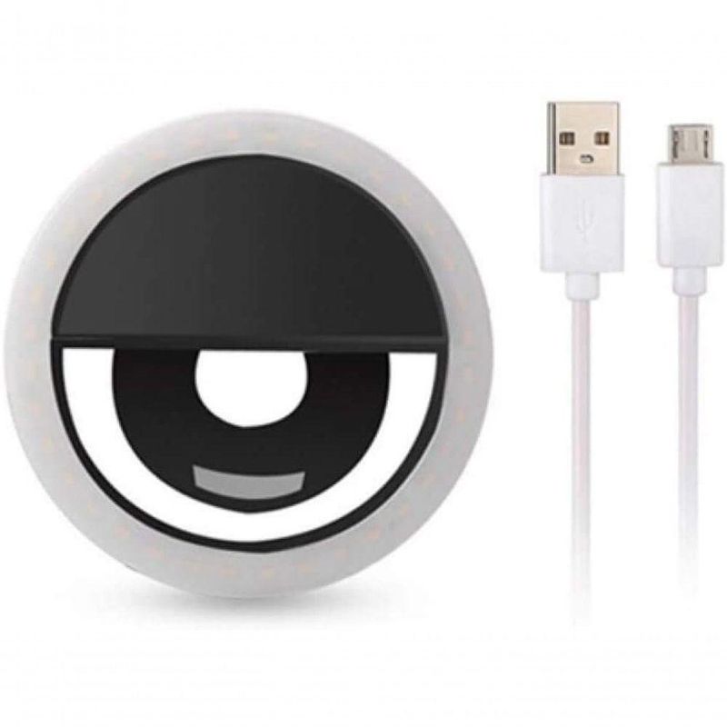 Iluminador Circular Led Celular/smartphone Selfie Ring Light (preto)O Iluminador Circular LEDCelular/SmartPhone Selfie Ring Light (Preto), funciona com Bateria Recarregável e de alta qualidade. Bom para você tirar fotos lindas. Tire fotos em qualquer lugar, boates escuras, festas, camping etc. Uma Iluminador Circular LED de flash macro tipo anel clip projetada especialmente para fotografia close-up, médica, científica, forense, etc. Este iluminador Selfie Ring Light Celular/SmartPhoneMacro ilumina sua imagem, não iporta quão baixas sejam as condições de iluminação.Principais Características: 3 níveis de luz de LED (Baixo, Médio e Forte) 36 Leds de Alta qualidade e Luminosidade Possui Bateria interna Recarregável (não ´preciosa de pilhas) Acompanha Cabo USB de Carregamento Iluminador LED Selfie para SmartPhones iPhones e AndroidCompatível: Universal todos modelos de Celular/SmartPhone, Tablets, sem restrições.