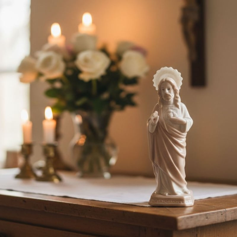 Imagem Sagrado Coração De Jesus Enfeite Em Cerâmica De 22cm - Uma peça religiosa e decorativa feita em cerâmica de alta qualidade, perfeita para decorar ambientes com fé, tradição e elegância. Ideal para oratórios, salas, varandas ou como um presente significativo Características: Material: Cerâmica resistente Tamanho: Altura 22cm x Largura 7cm Detalhes: Acabamento cuidadoso, pintura refinada, design clássico Uso: Decoração religiosa, ornamentação de ambientes, presente de fé, uso em oratórios familiares Embalagem: 1x Imagem Sagrado Coração De Jesus 22cm Características Gerais do Produto: • Material: Cerâmica • Modelo: Sagrado Coração De Jesus • Cor: Bege • Dimensões aproximadas: Altura 22cm x Largura 7cm Garantia: • Garantia de fábrica - 1 Mês