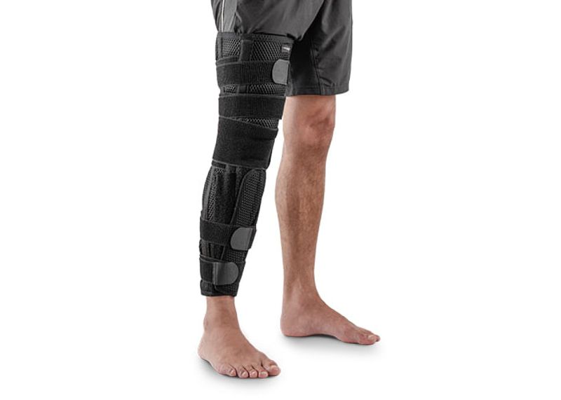 Imobilizador de Joelho Hidrolight Comfort Air Largo 70cm PretoO Imobilizador de Joelho Hidrolight Comfort Air Largo 70cm Preto é indicado para pós-operatório, instabilidade de artroses, artrites reumatoides, afecções traumáticas, substituição do gesso e treinos de ortostatismo. Imobilizador de Joelho Hidrolight Comfort Air oferece imobilização e estabilidade na articulação do joelho, proporcionando um maior conforto devido ao seu material de qualidade. Possui cinco talas que garantem segurança e proteção. Ajuste através das faixas com fecho aderente.Tamanhos:Largo:Circunferência da coxa 80cm.Circunferência da canela 40cm.Alturas - 50cm, 60cm e 70cm.Instruções de Uso:1 - Abra o produto completamente e posicione o imobilizador atrás do joelho.2 - Feche as abas superiores ajustando a compressão em torno da coxa. 3 - Feche as abas inferiores ajustando a compressão em torno da canela. 4 - Ajuste a faixa elástica central em torno do joelho. 5 - Ajuste as duas faixas elásticas superiores em torno da coxa. 6 - Ajuste as duas faixas elásticas inferiores em torno da canela.Composição:90% poliéster, 10% elastodieno, 5 talas 100% alumínio, 5 talas PVC.Autorização e Cadastro ANVISA8.07.582-1 | 80758210028
