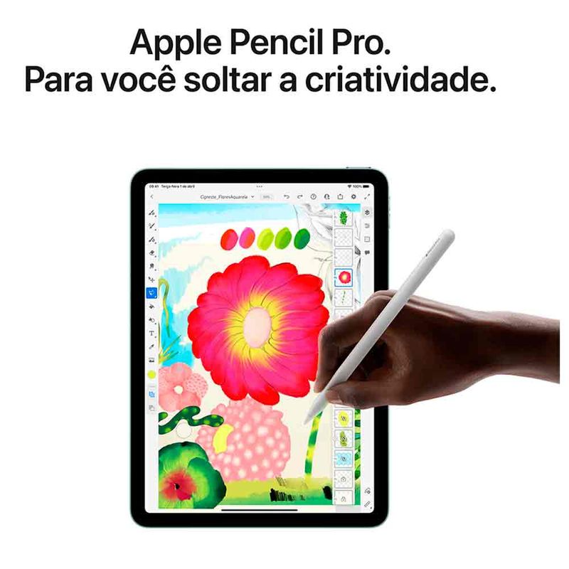 Características Sistema OperacionaliPadOS TelaTipo da Tela: Liquid RetinaTamanho da Tela: 11"Resolução da Tela: 2360 x 1640 pixels a 264 ppp Conectividade5GWi‑Fi 6E (802.11ax) com MIMO 2x2Bluetooth 5.3 Capacidade512GB ProcessadorChip M3 CâmeraCâmera Traseira: Grande-angular de 12 MP, abertura ƒ/1.8Câmera Frontal: 12MP Center Stage horizontal Portas de Entrada e SaídaPorta USB-C Outros RecursosTipo de Chip: NanoTVGPSMP3Recursos de Vídeo: Gravação de vídeo 4K a 24 qps, 25 qps, 30 qps ou 60 qps. Gravação de vídeo HD de 1080p a 25 qps, 30 qps ou 60 qps. Gravação de vídeo HD de 720p a 30 qps. Vídeo em câmera lenta de 1080p a 120 qps ou 240 qpsIdiomas do Menu: Alemão, árabe, catalão, chinês (simplificado, tradicional, tradicional de Hong Kong), coreano, croata, dinamarquês, eslovaco, espanhol (América Latina, Espanha, México), finlandês, francês (Canadá, França), grego, hebraico, hindi, holandês, húngaro, indonésio, inglês (Austrália, EUA, Reino Unido), italiano, japonês, malaio, norueguês, polonês, português (Brasil, Portugal), romeno, russo, sueco, tailandês, tcheco, turco, ucraniano, vietnamita BateriaTipo de Bateria: Polímero de lítio CorRoxo EAN195949988547 Especificações TécnicasModelo: MCG74BZ/AGarantia: 12 mesesCertificado de homologação da Anatel: 10822-24-01993 Dimensões e PesoDimensões do produto sem embalagem (AxLxP): 247,6x178,5x0,61 mmDimensões do produto com embalagem (AxLxP): 192,0x261,0x51,0 mmPeso do produto sem embalagem: 0,460 KgPeso do produto com embalagem: 0,906 Kg Itens InclusosiPad AirCabo para recarga com conector USB-C (1 metro)Adaptador de energia USB-C de 20W