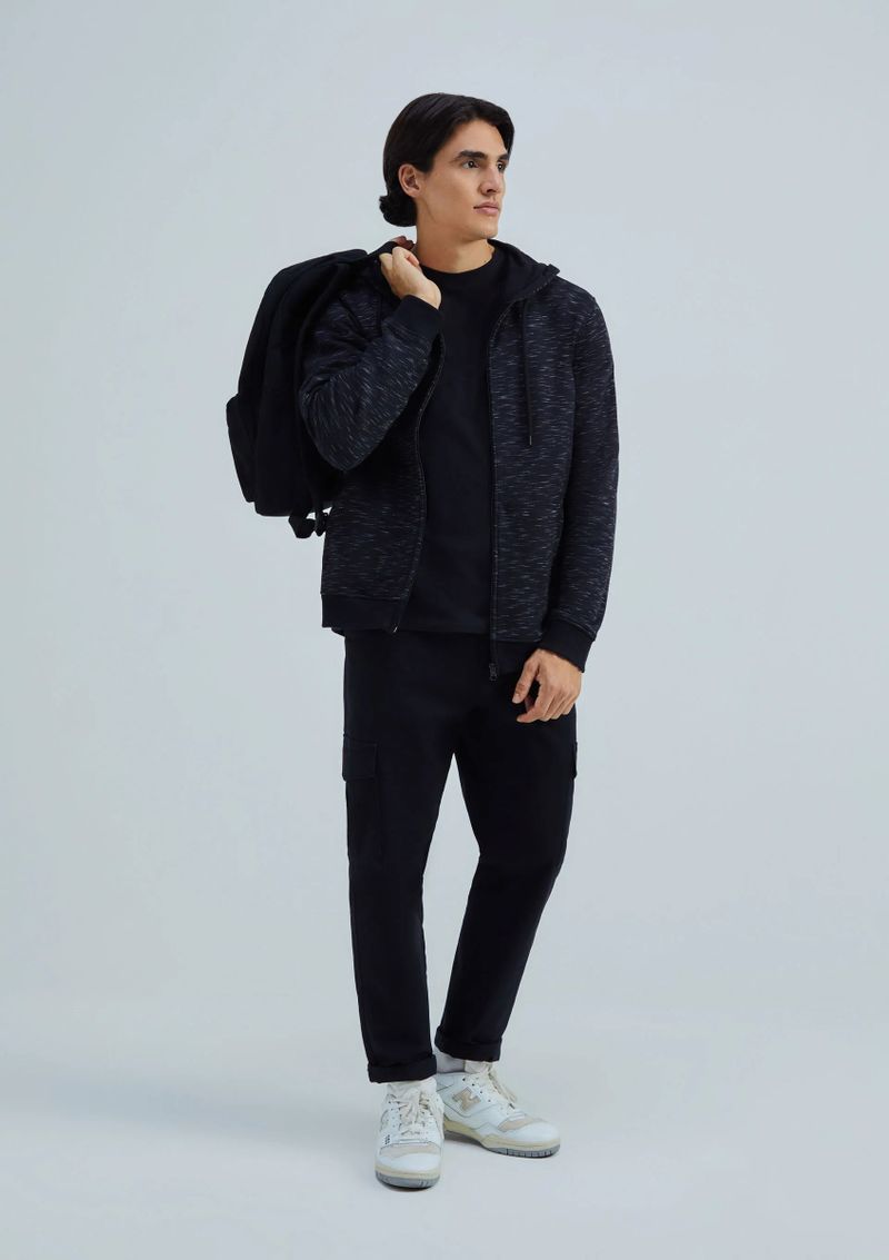 Jaqueta Masculina Em Moletom Jet Peluciado, a peça versátil para qualquer estação do ano. Elaborada em moletom peluciado jet, conta com detalhes rajados em branco. Possui shape comfort, toque macio e alta durabilidade, ideal para te acompanhar nos momentos que pedem por conforto. Detalhes da peça: - Em moletom; - Peluciado; - Modelagem comfort; - Detalhes rajados; - Bolso canguru; - Capuz duplo com cordão; - Fechamento com zíper; - Punhos e barra em ribana. Composição: Corpo - 98% Algodão + 2% Poliéster Forro - 100% Algodão Capuz - 100% Algodão