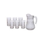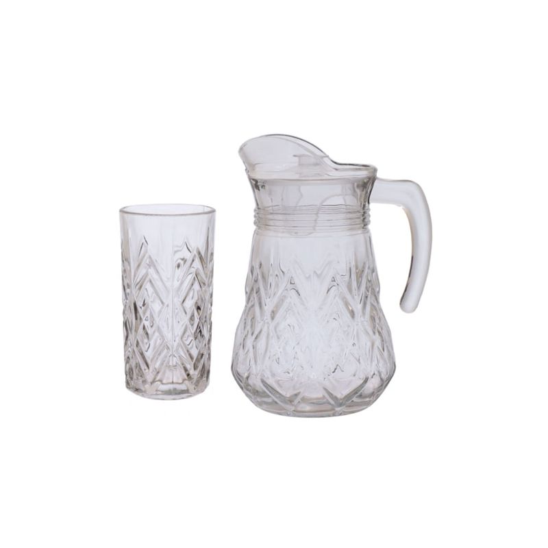 Jarra 6 Copo Vidro Samantha - HauskraftO toque de elegância e qualidade que a sua mesa merece!Com um design moderno que complementa qualquer ambiente, a Jarra 6 Copo Vidro Samantha da marca Hauskraft é a escolha ideal para quem valoriza sofisticação e resistência. Seu vidro cristalino e brilhante garante durabilidade e uma experiência diferenciada ao servir suas bebidas preferidas.Diferenciais:Vidro de alta qualidade: Garante resistência e durabilidade ao produto, além de proporcionar um visual refinado e elegante.Design moderno: Complementa a decoração da sua mesa, trazendo um toque de sofisticação.Capacidde ideal: A jarra comporta 1 litro e os copos possuem 250ml de capacidade, perfeito para servir suas bebidas com praticidade.Mais sobre o Produto:Ideal para servir água, sucos, chás e outras bebidas com estilo e qualidade.Perfeito para uso diário, jantares especiais, encontros com amigos e ocasiões festivas.Dicas de uso:Lave os itens delicadamente à mão, evitando impactos que possam danificar o vidro.Utilize a jarra e os copos em momentos especiais ou no dia a dia para dar um toque de elegância às suas refeições.Ficha Técnica:Marca: HauskraftMaterial: VidroQuantidade por pacote: Jarra e 6 coposCategoria: Utensílios para mesaCor: TransparenteColeção: Samantha