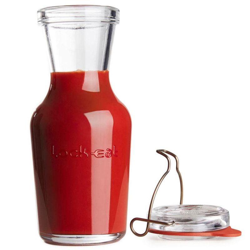 As jarras de vidro da coleção Lock Eat foram concebidos para armazenar diversos tipos de bebidas. O corpo e a tampa são produzidos em vidro 100% eco-friendly, podendo ser reciclados após o uso. E por serem transparentes, facilitam a visualização do conteúdo interno, sem que para isso seja preciso abri-lo. Podem ser lavados em lava-louças convencionais, mas não podem ir ao micro-ondas, por exemplo, a não ser que o grampo e a borracha sejam retirados. E por falar no grampo, ele é feito de aço inox, que não enferruja, e, caso seja retirado, a Jarra Lock Eat pode ser levada à mesa, bar ou buffet, do mesmo jeito.