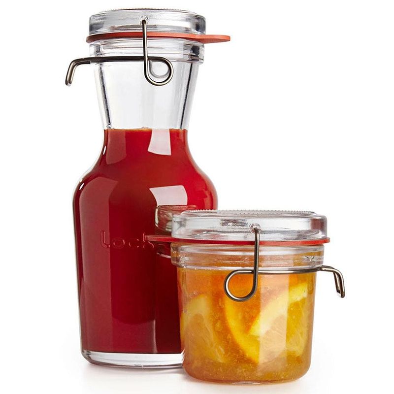 As jarras de vidro da coleção Lock Eat foram concebidos para armazenar diversos tipos de bebidas. O corpo e a tampa são produzidos em vidro 100% eco-friendly, podendo ser reciclados após o uso. E por serem transparentes, facilitam a visualização do conteúdo interno, sem que para isso seja preciso abri-lo. Podem ser lavados em lava-louças convencionais, mas não podem ir ao micro-ondas, por exemplo, a não ser que o grampo e a borracha sejam retirados. E por falar no grampo, ele é feito de aço inox, que não enferruja, e, caso seja retirado, a Jarra Lock Eat pode ser levada à mesa, bar ou buffet, do mesmo jeito.