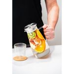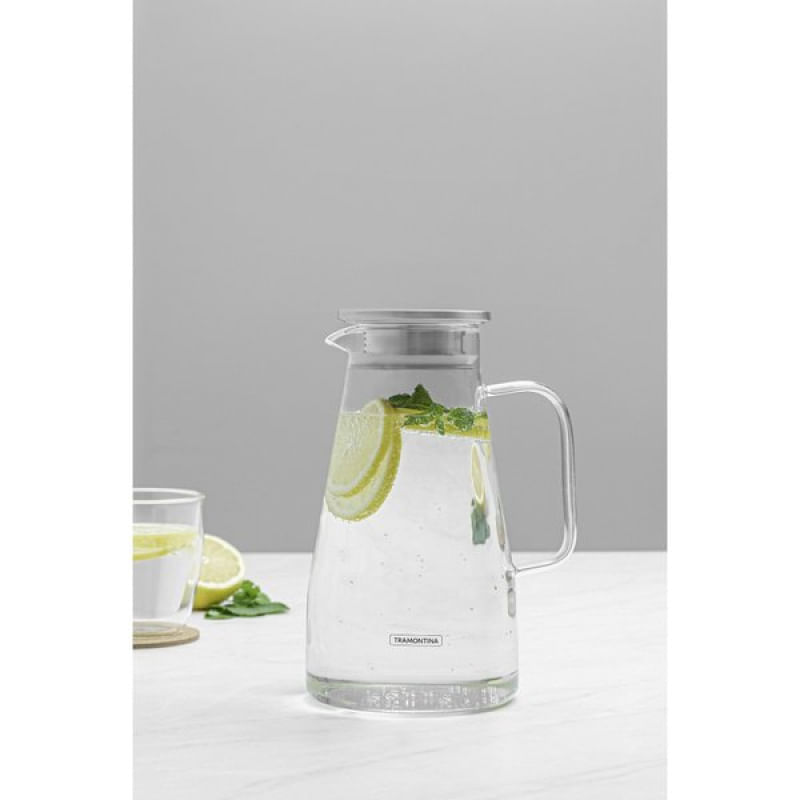 Jarra em Vidro Borossilicato Tramontina com Tampa em Aço Inox 1,8 L Tramontina - A jarra em vidro borossilicato Tramontina com tampa em aço inox 1,8 L é perfeita para quem busca sofisticação e praticidade na hora de servir bebidas. Seu corpo em vidro borossilicato garante durabilidade e resistência a variações de temperatura, enquanto a tampa em aço inox com pequenos furos permite que apenas o líquido seja servido, mantendo sólidos como gelo ou folhas de chá dentro da jarra. Além disso, o design ergonômico da alça proporciona conforto e segurança, facilitando o manuseio durante o uso. A jarra pode ser levada à lava-louças, o que facilita a limpeza e a manutenção da sua qualidade. Seja em eventos formais ou no uso cotidiano, essa jarra combina versatilidade e elegância, garantindo que você possa servir suas bebidas de maneira prática e sem gotejamentos indesejados. Características Gerais do Produto: Garantia: • 3 Meses