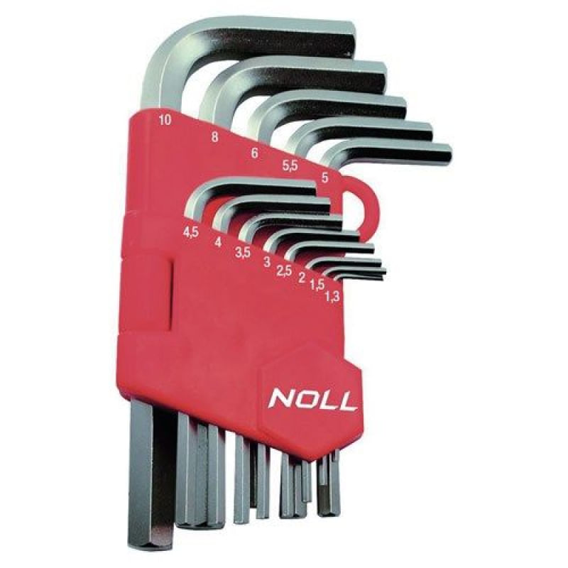 Jogo de Chaves Allen com 13 Peças NOLL-3740003 Fabricado em aço vanádio Acabamento cromado Utilizada para fixar ou soltar parafos com sextavados internos A chave tem o perfil do corpo em L", o que possibilita o efeito de alavanca durante o aperto ou desaperto de parafusos Composto por 13 peças, sendo: - 1.30mm, 1.5mm, 2.0mm, 2.5mm, 3.0mm, 3.5mm, 4.0mm, 4.5mm, 5.0mm, 5.5mm, 6.0mm, 8.0mm, 10.0mm"SKU: 11051956