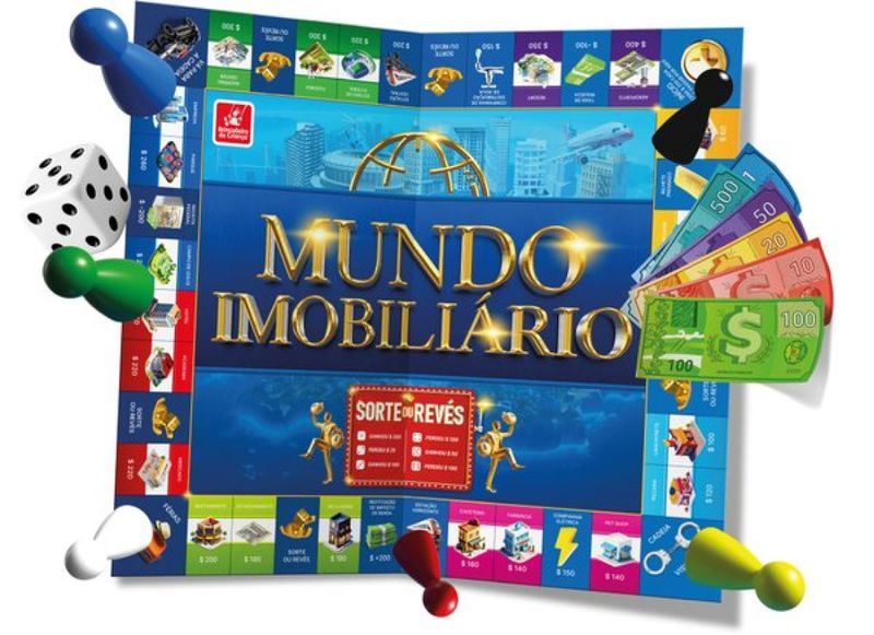 JOGO - MUNDO IMOBILIÁRIO - O jogo perfeito para aqueles que amam um desafio! Compre, venda e negocie para construir seu império. É hora de testar suas habilidades financeiras e se tornar o magnata do momento! Características Gerais do Produto: • Faixa Etária: 5 a 13 anos de idade • Faixa Etária: +7 • Marca: Brincadeira de Criança • Material: Plástico e Papel Cartão. Acompanha o produto: • 1 tabuleiro, 1 dado, 6 peões, 210 cédulas de brinquedo, 27 cartas de propriedade e 44 peças de construção. Garantia: • 7 dias de garantia