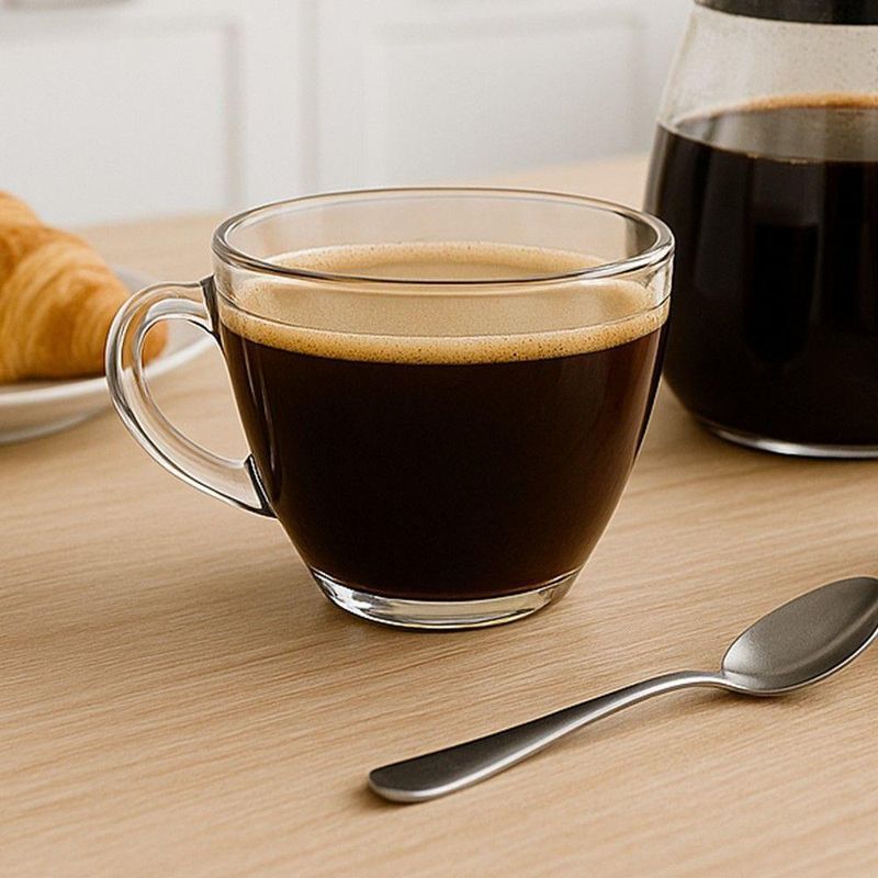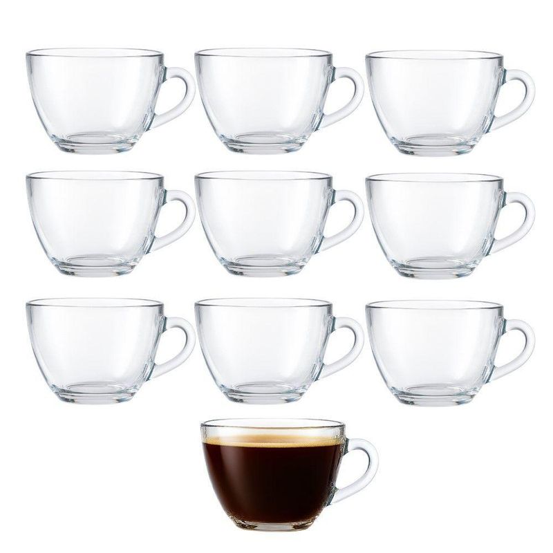 Jogo 10 Xícara De Café De Vidro 90ml Básica Brasilia Em Casa TemJogo 10 Xícara de Café de Vidro 90ml Básica Brasilia Em Casa TemXícara para café com capacidade de 90ml, ideal para o serviço individual da bebida. Fabricada em vidro, material que não altera o sabor do café e facilita a higienização, evitando odores residuais. O design simples e funcional da peça permite a combinação com diversos estilos de louça e ambientes.A transparência do vidro possibilita a apreciação da coloração e da textura do café, enquanto a espessura do material contribui para a manutenção da temperatura da bebida por mais tempo. A ausência de detalhes decorativos garante versatilidade, tornando a xícara adequada tanto para o uso diário quanto para ocasiões especiais.Benefícios:- Material neutro que preserva o sabor original do café.- Fácil limpeza e higienização, prevenindo o acúmulo de resíduos.- Design minimalista que se adapta a diferentes estilos de mesa.- Resistência a variações de temperatura, permitindo o uso com bebidas quentes.Xícara de Café de Vidro 90ml Básica Brasilia Em Casa TemCódigo: 127041Referênica: 18076Marca: EmCasaTemMaterial: VidroCor: TransparenteDimensões do produto (AxLxC): 5,00x7,00x7,00cm cada unidadeQuantidade: Kit com 10 unidades
